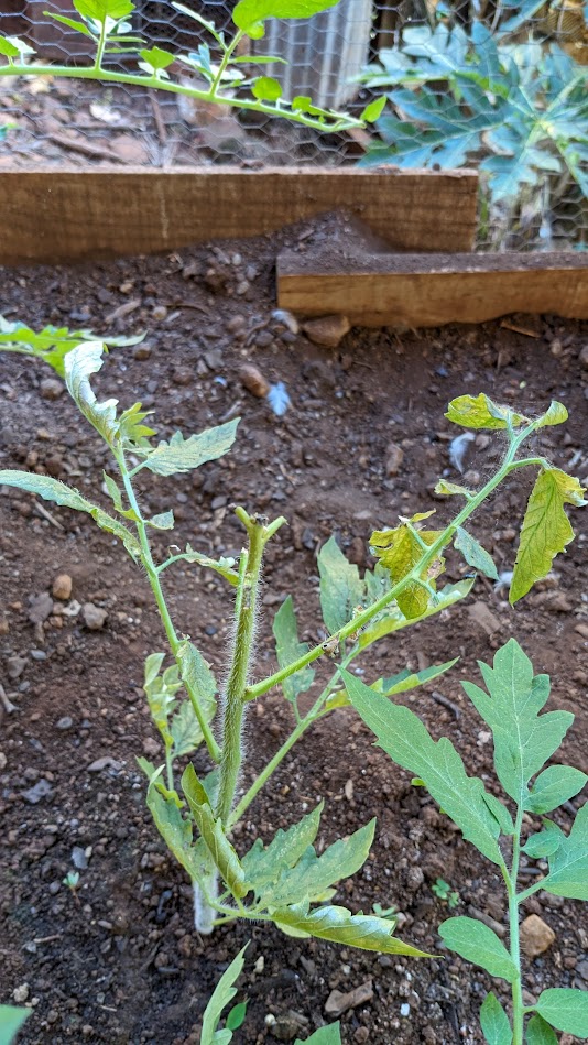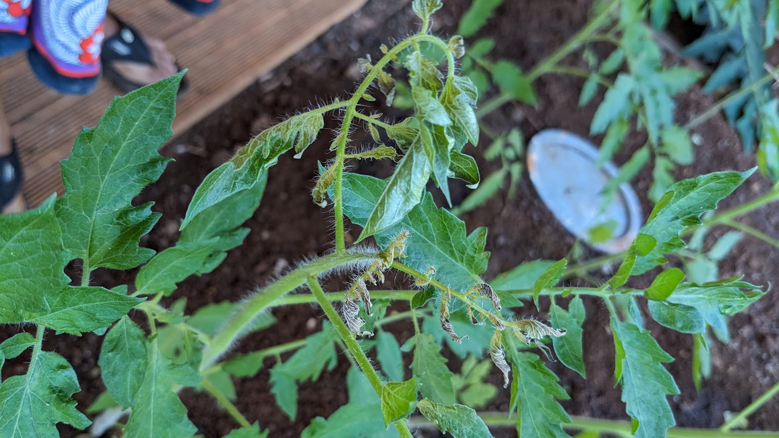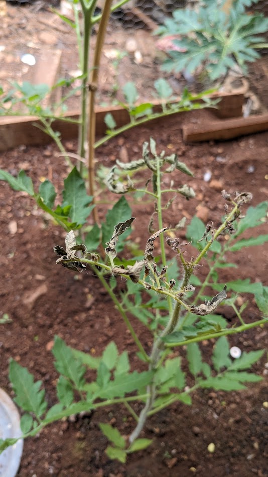 Bonjour, je n'ai rien traité même avant de mettre les tomates. Tout allait bien pendant 1 mois et demi, deux mois. J'ai acheté du terreau et j'ai utilisé la terre du jardin.