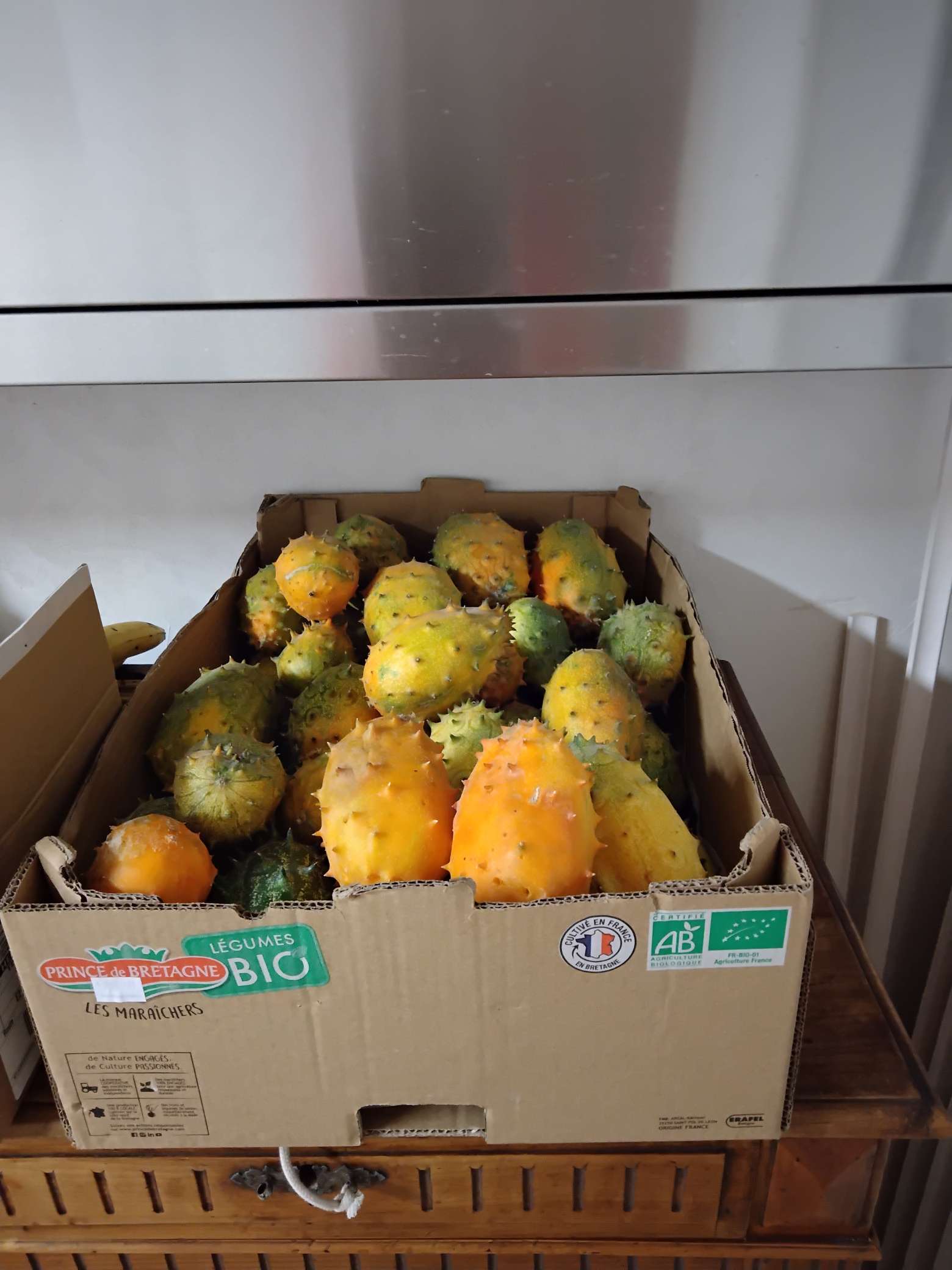 Les quatre caisses de kiwanos sont rapatriées au chaud. J'ai même trouvé encore quelques poivrons verts