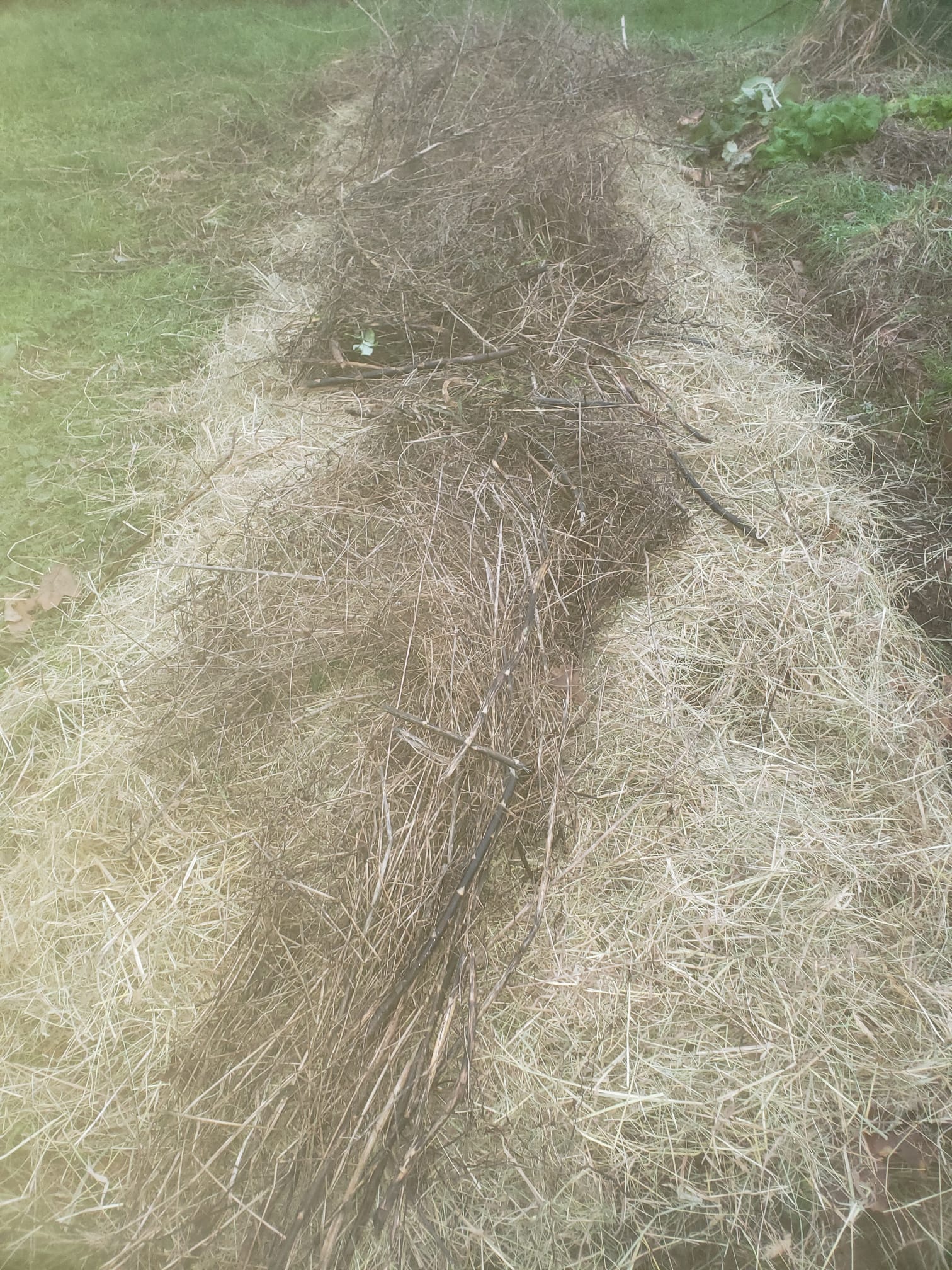Hier, j'ai enfin terminé avec la préparation des asperges pour l'hiver. Après un déseherbage minutieux fin décembre, le gel a passé sur le sol. J'ai recouvert d'une couche de feuilles, de foin et ai terminé en reposant les tiges séchées par dessus, pour tenir le foin.