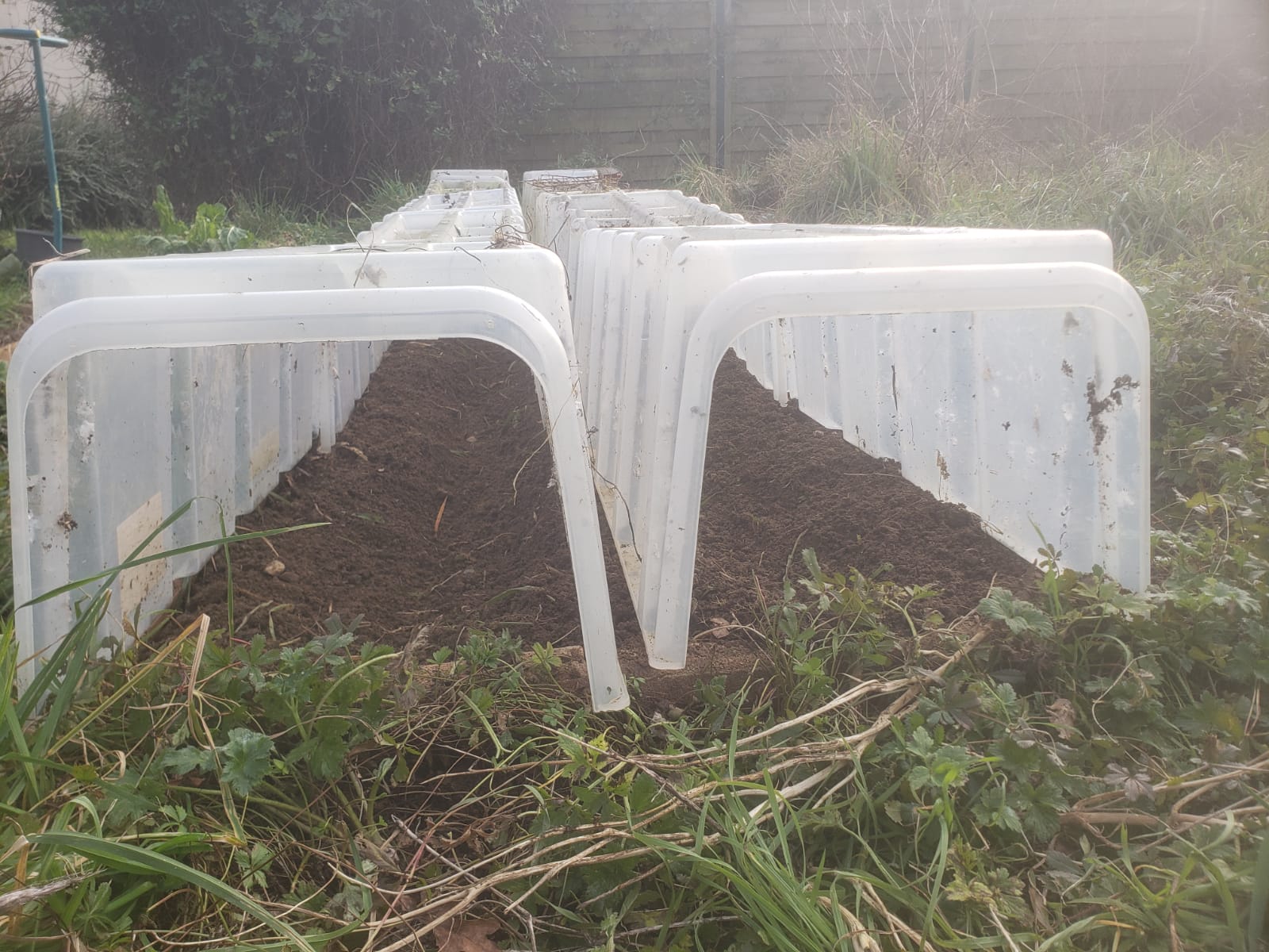 A la moitié du désherbarge J'ai sorti 3 seaux de racines de liseron, potentilles rampantes et diverses autres plantes A la fin du désherbage Avec toute la couverture végétale