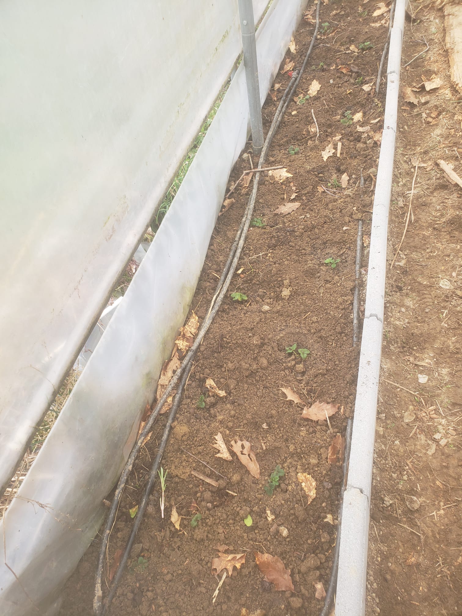 L'emplacement des fraisiers, dans le tunnel, pour un total de 4m² Toutes ces activités ont un peu dérangé un de mes anti-limaces