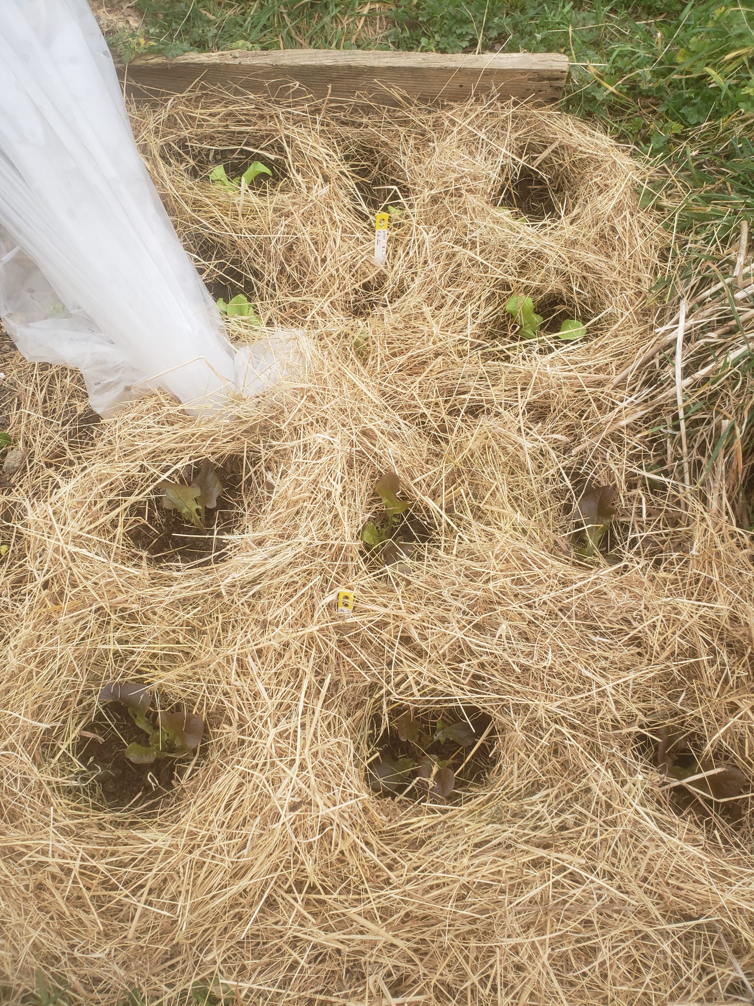 - repiqué des salades récupérées de la benne au travail (12 Belappia - comme Appia, mais plus adaptée aux conditions hivernales) au milieu des fraisiers Ananas