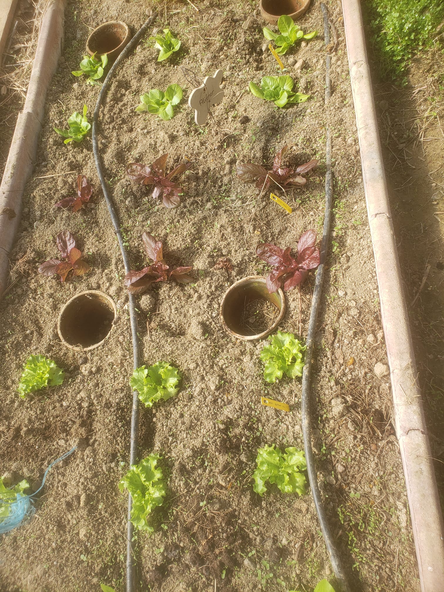 - plantation de salades (encore des rescapées de la benne) : 6 feuille de chêne verte, 6 feuille de chêne rouge, 6 batavia blonde, 6 batavia rouge (où ? C'est une bonne question à laquelle je n'ai pas encore de réponse)