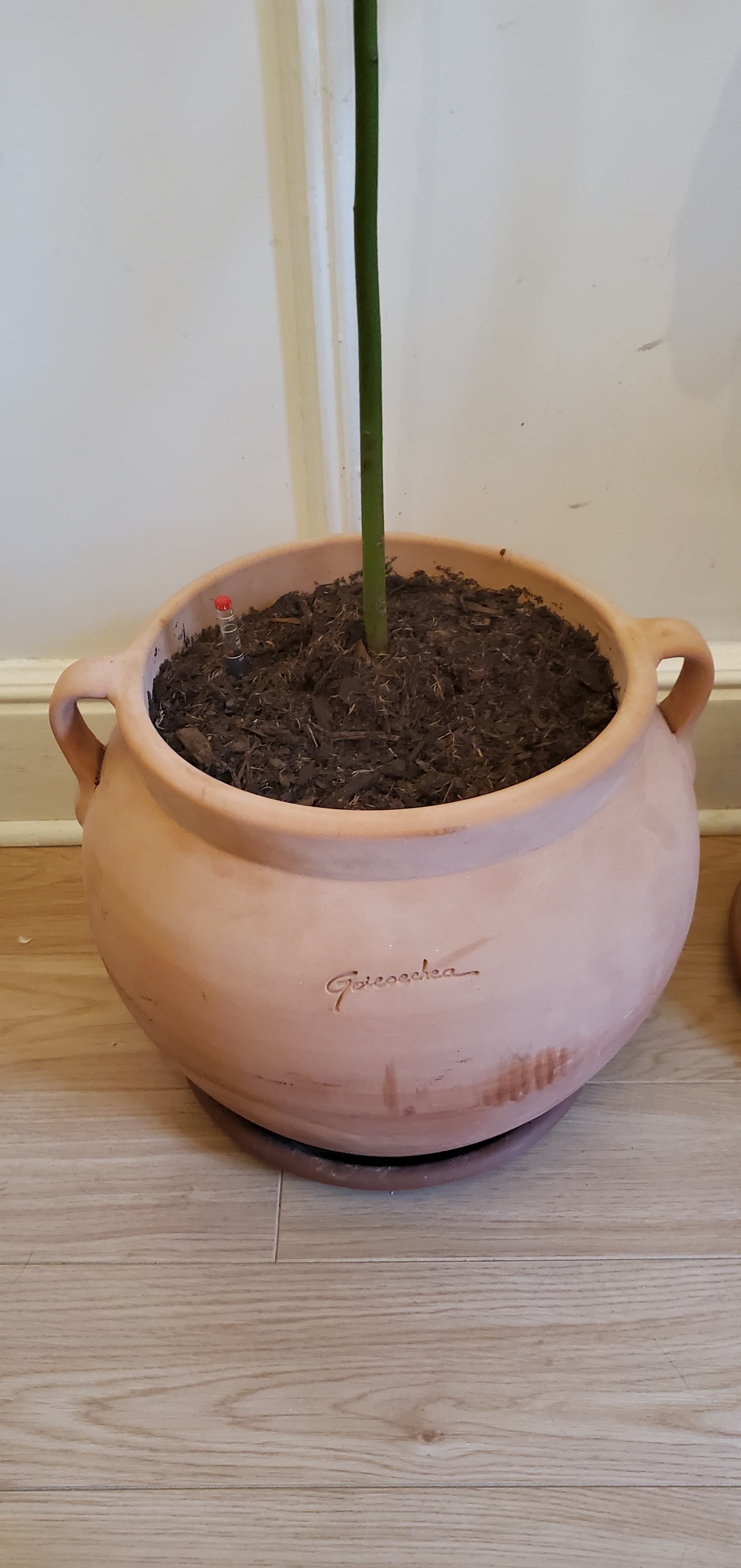 Regardez les feuilles (photos en pièce jointe), elles naissent systématiquement malades. Il y a quelques mois je l'ai mis dans un nouveau grand pot en terre cuite et j'ai changé son substrat (avec des bille d'argile à la base). Je l'arrose avec de l'eau déminéralisée 1 fois par semaine pour ne pas le noyer et maintenir l'humidité optimale.