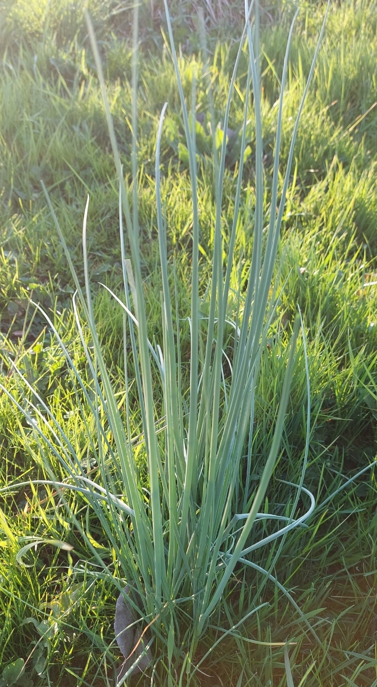 La plante ressemble à une ciboulette mais en bien plus massif, jusqu'à 30-40 cm de haut (en comparaison, la ciboulette au potager ne fait que 5-10cm de haut).