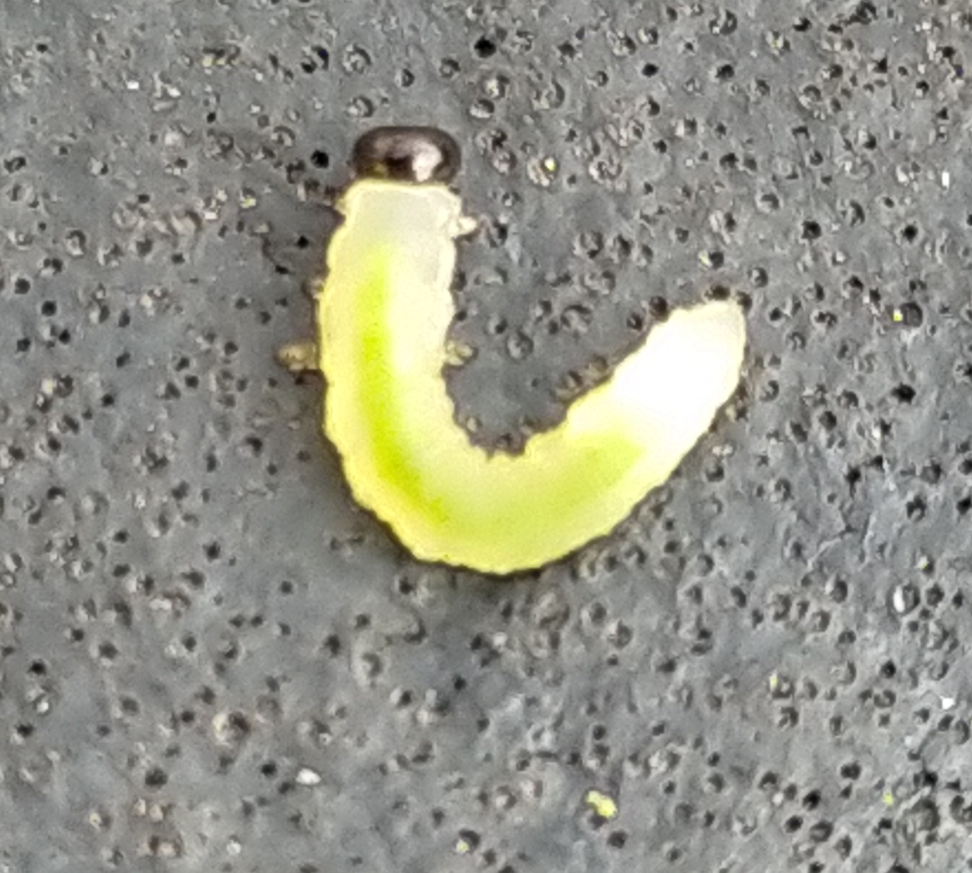 Voici la photo d'une de ces petites chenilles (dont jeu trouvé le nom) qui dévorent toutes les feuilles de ma casseille !!!