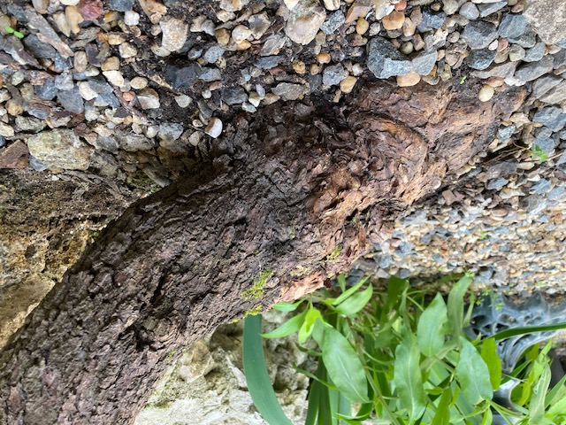 Son diamètre au sol est de 70 cm et son tronc principal 35cm de diamètre . Il est énorme . Le mur sur lequel il repose à été construit en 1920 . Serait il centenaire ?