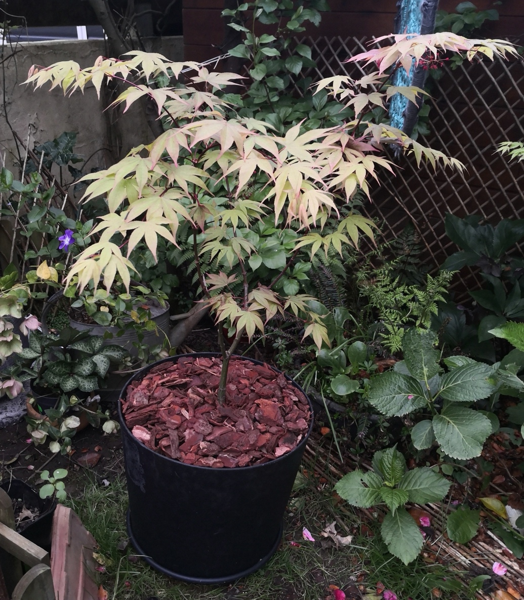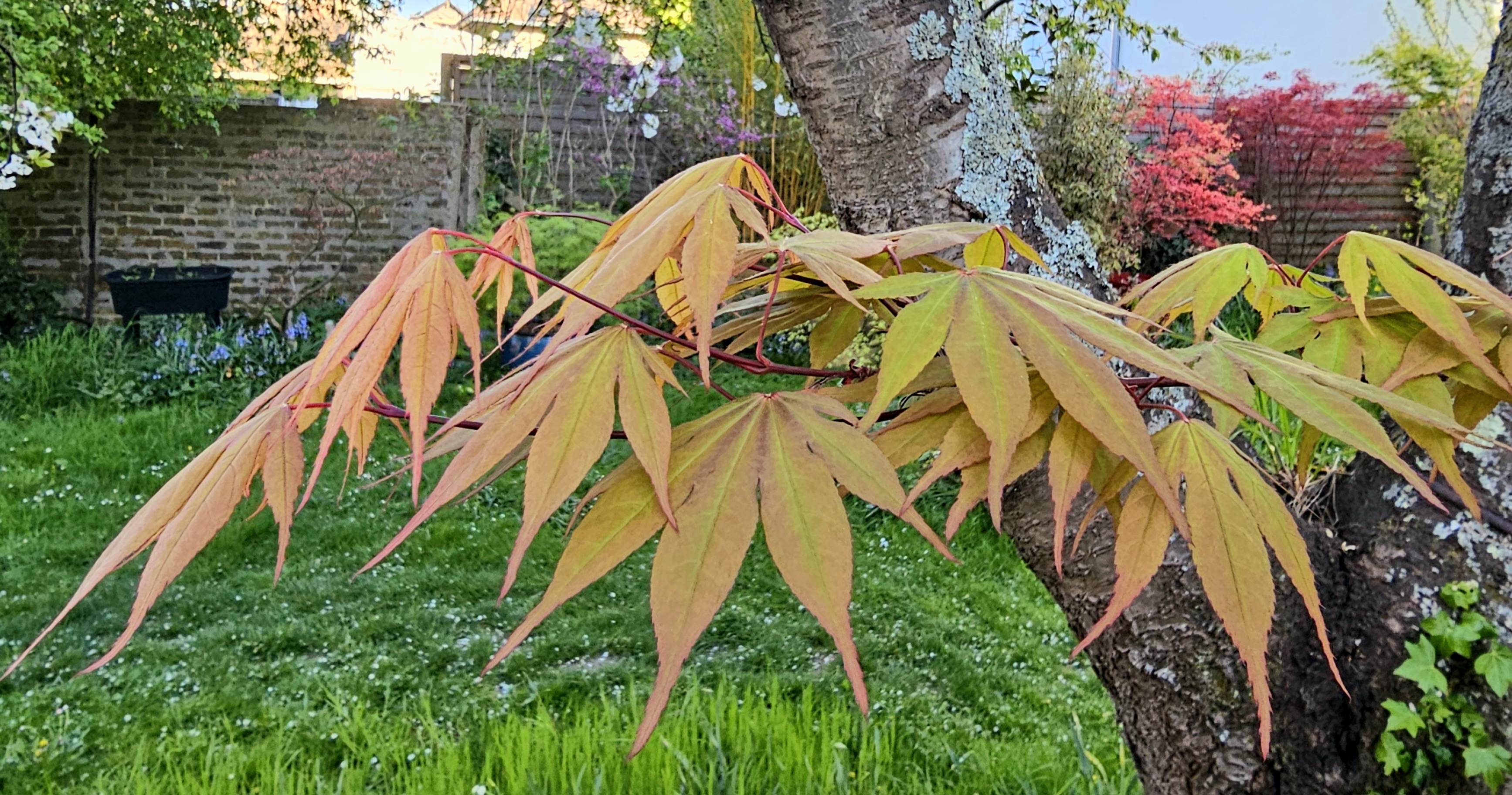 Il commence à se faire lui même de l'ombre et le prunus 'Kanzan' qui est plus touffu aide également.