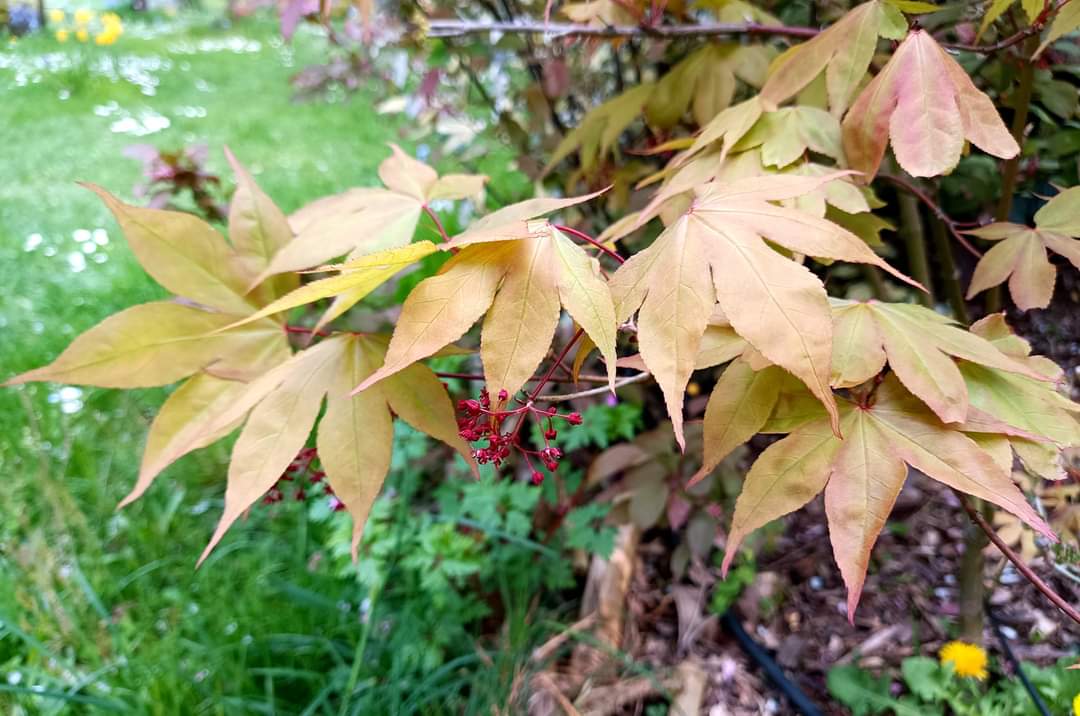 La couleur pêche orange et les feuilles incurvées vers le bas pendant quelques semaines de ozakazuki akame c est quand même spécial au printemps. J étais en admiration ce matin avec mon café.