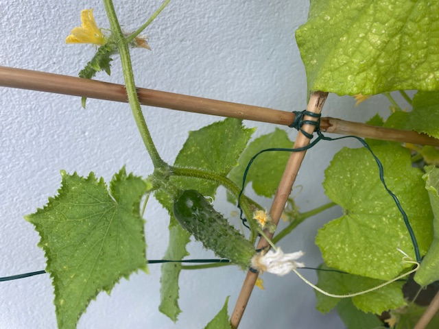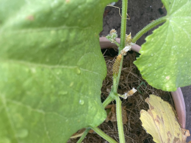 Concernant les premiers concombres (pot), ils sont restés tout petits et commencent à pourrir, pourtant d'autres concombres sortent et sont plus gros. La plante elle continue de grandir.