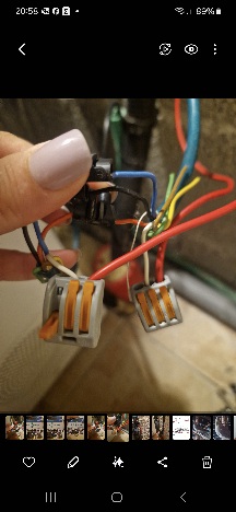 Le câble multi-brins de toutes les couleurs sert uniquement de rallonge. Donc prenez un fil de l'électrovanne, raccordez le par exemple sur le bleu (il n'y a pas d'importance pour les couleurs). Prenez le second fil de l'électrovanne et branchez sur le blanc.