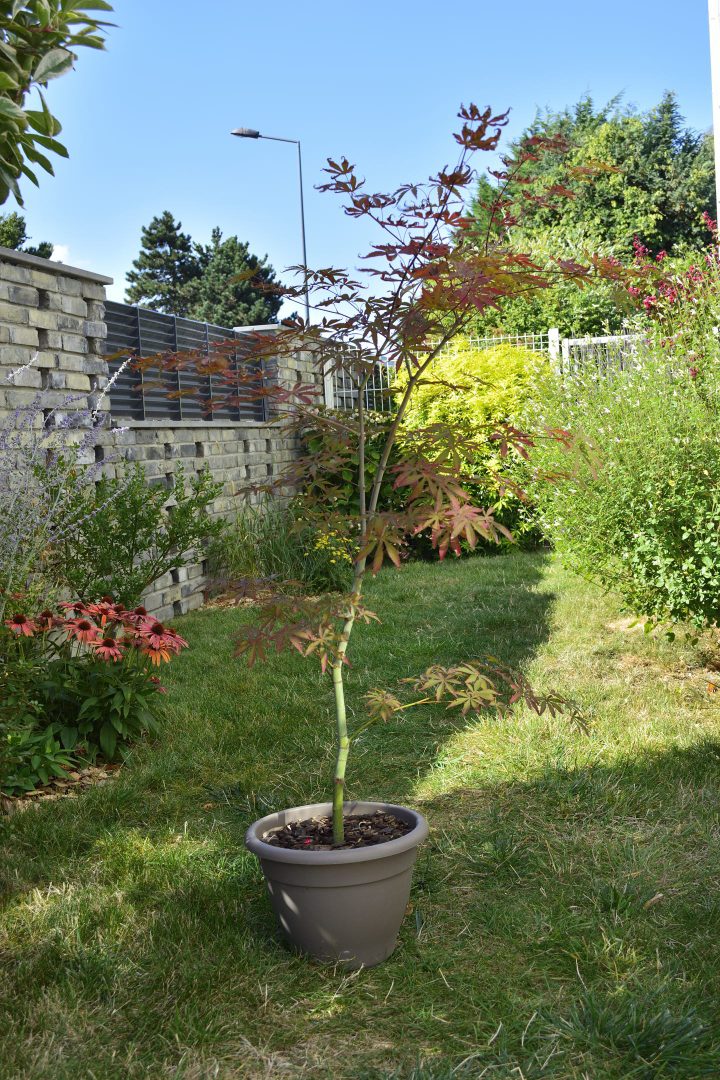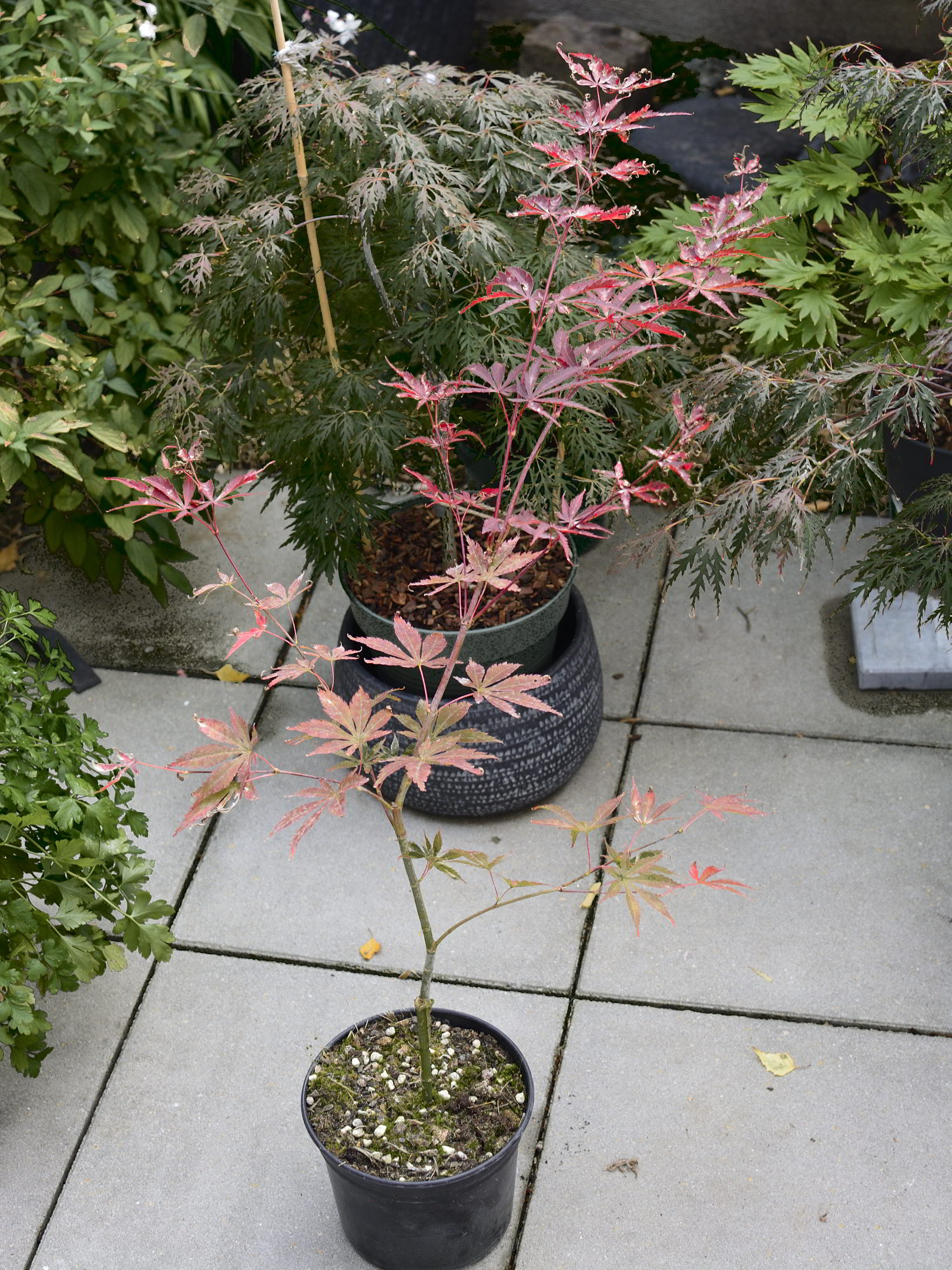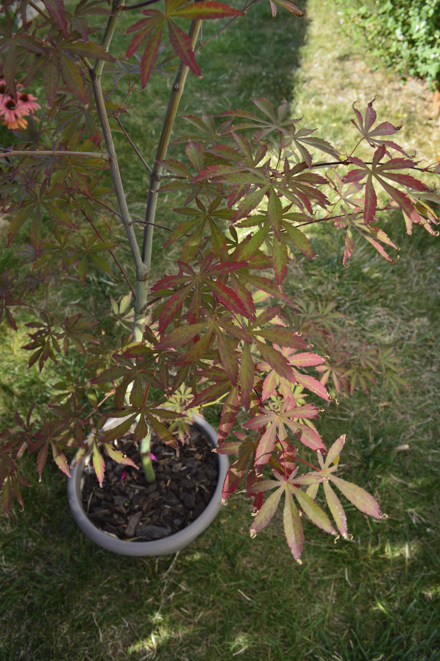 Pour la hauteur, c’est un choix. Plus un érable en pot pousse en hauteur plus il prend le vent ...