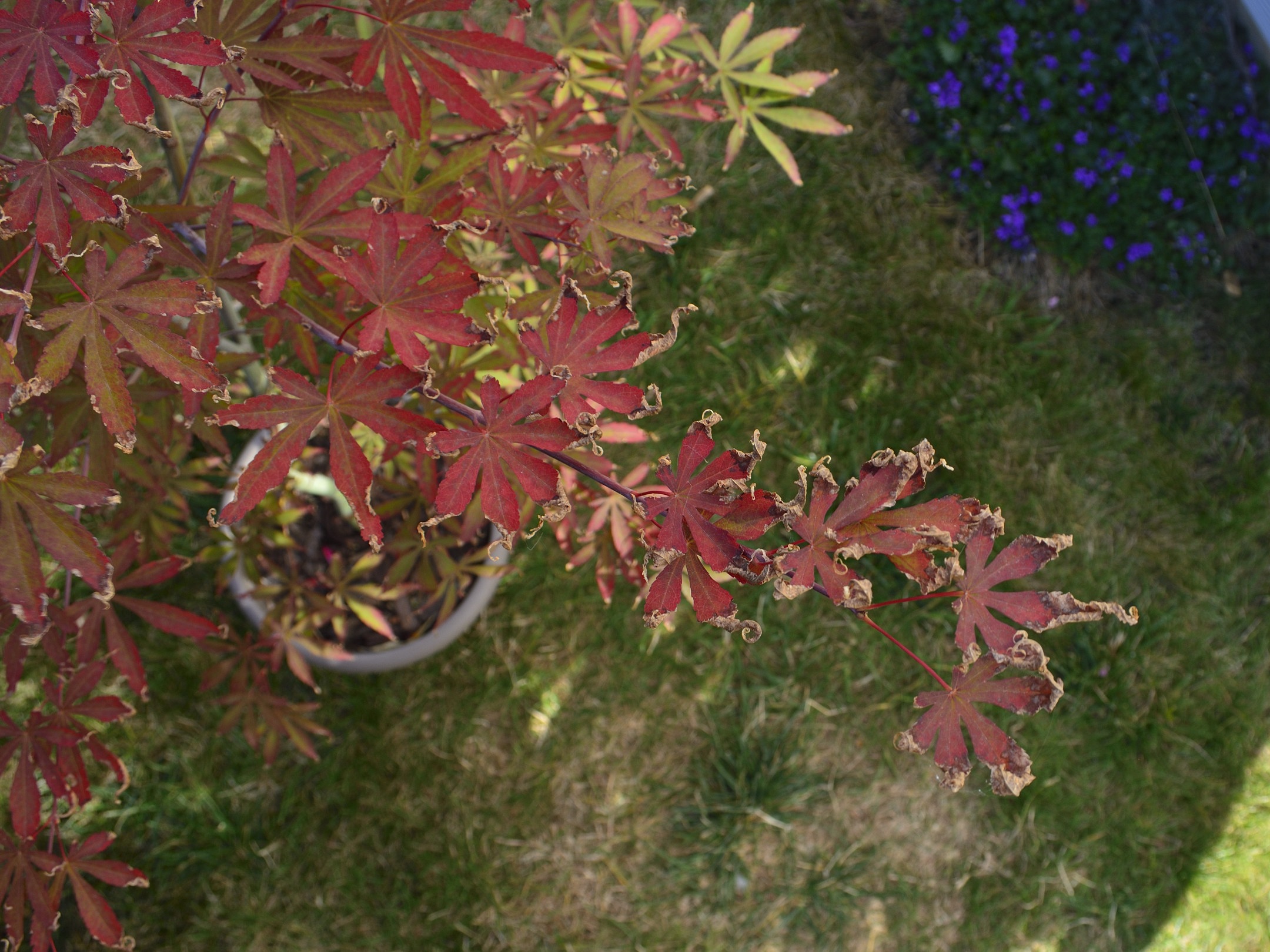 Après 5 semaines d absence (retour il y a 10j) et un arrosage automatique défaillant les 3 dernières semaines, j ai retrouvé les érables dans un état très disparate.