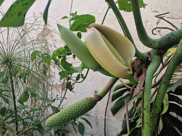 Un beau matin j avais découvert que mon monstera deliciosa vient de donner naissance à trois fruits. Quelques jours après, l un des fruits commença à retirer sa combinaison, Celle-ci se dessèche, puis chute au troisième jour 8 jours après, un deuxième fruit commença ,à son tour, à retirer sa combinaison.