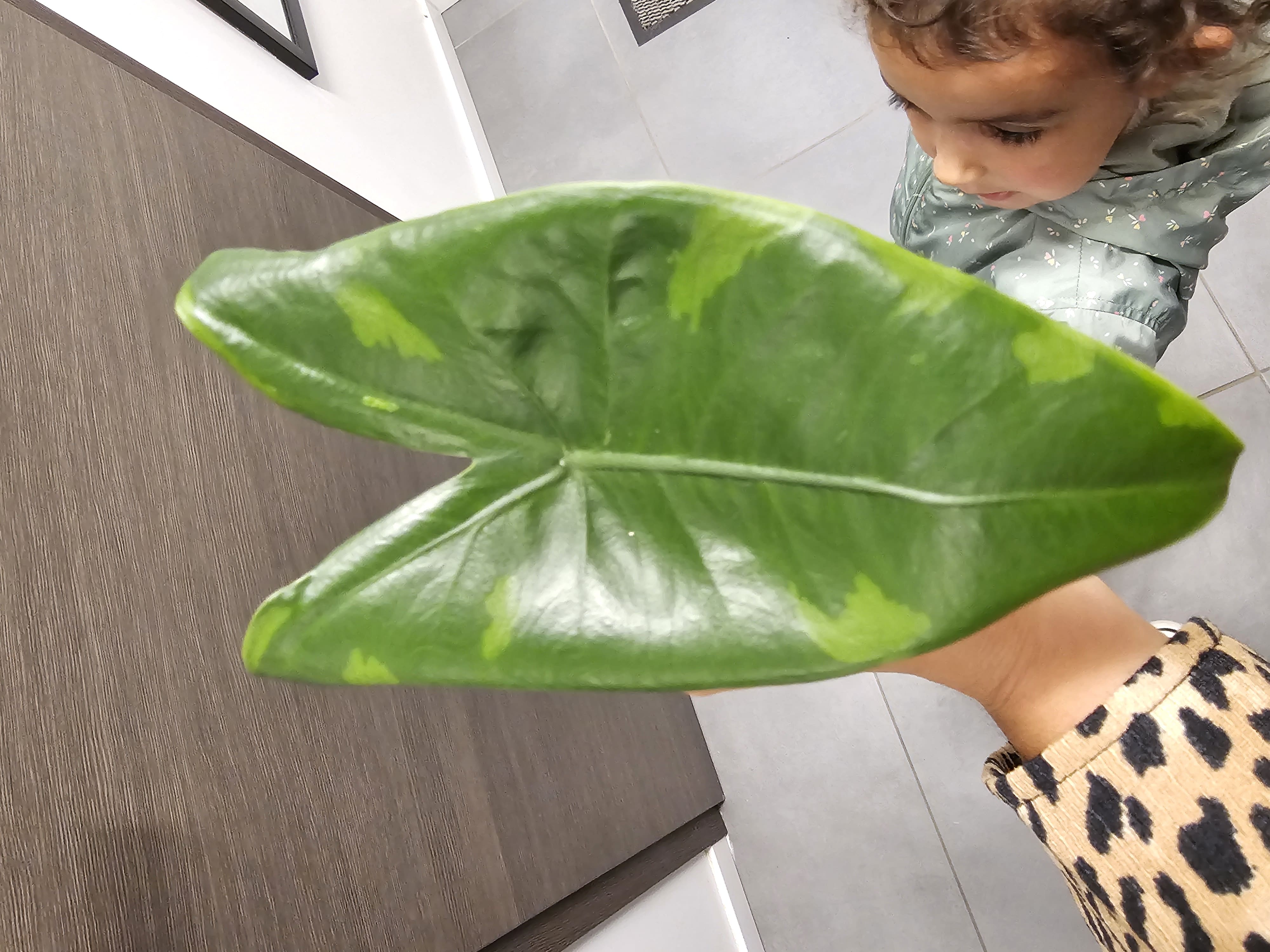 Mais ce matin, surprise... des tâches sur l'une des feuilles de mon Alocasia Zebrina.