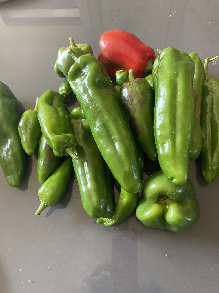 Pendant ce temps là cueilli les tomates mûres et les poivrons même verts ainsi que tous