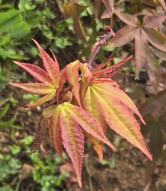 Feuillage rose pâle au printemps, puis vert tendre durant l'été. Les nouvelles pousses donnent des feuilles aux pointes rouges en été. Sur l'automne rouge cramoisi.