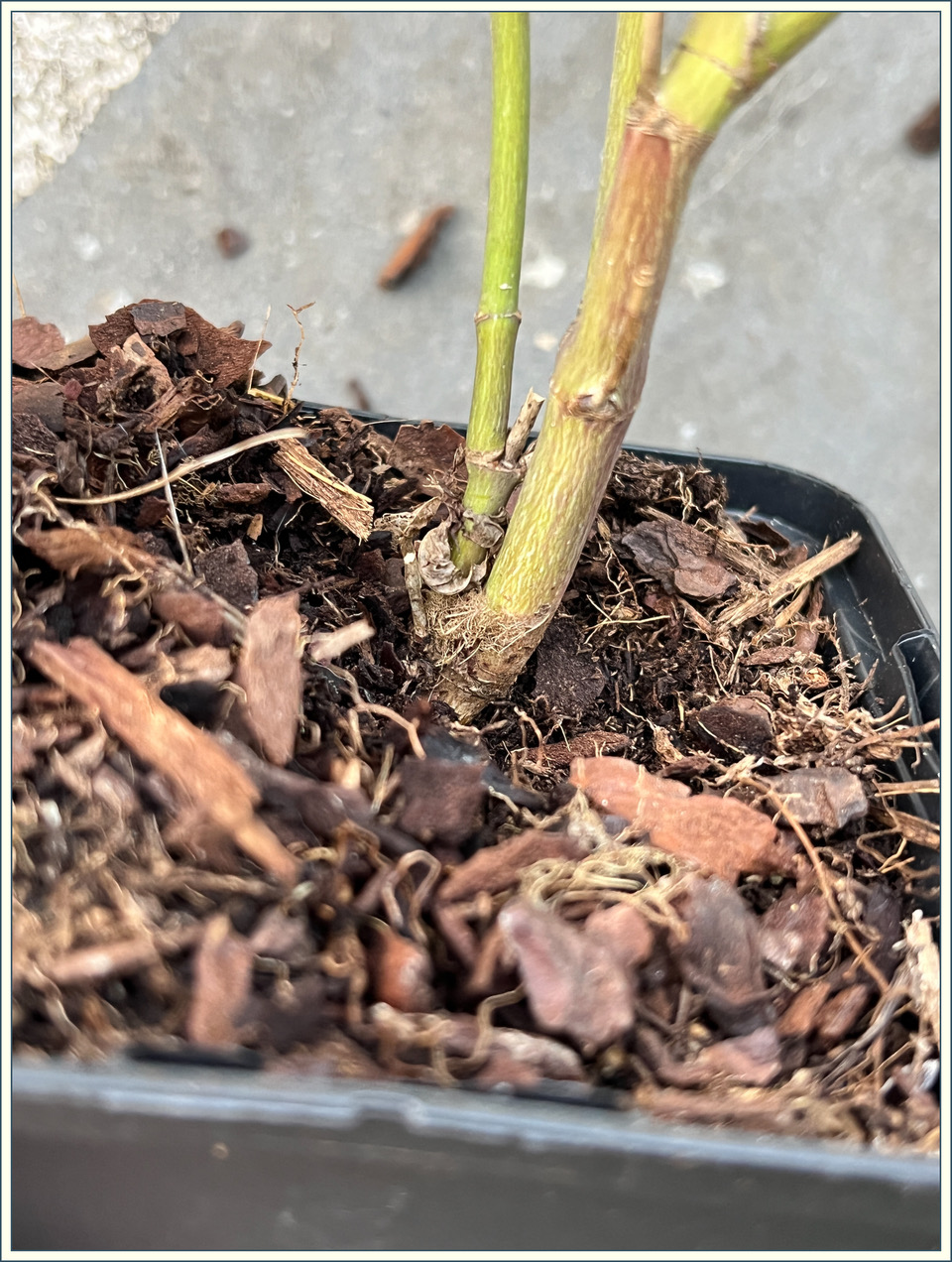 J'ai retrouvé des photos prises à l'achat en juillet 2023. Sur la dernière photo, la petite branche qui part vers la gauche, est la branche verte aujourd'hui. Est-ce pour autant possible que ce "gourmand" (mon hypothèse) soit si tôt apparu ?