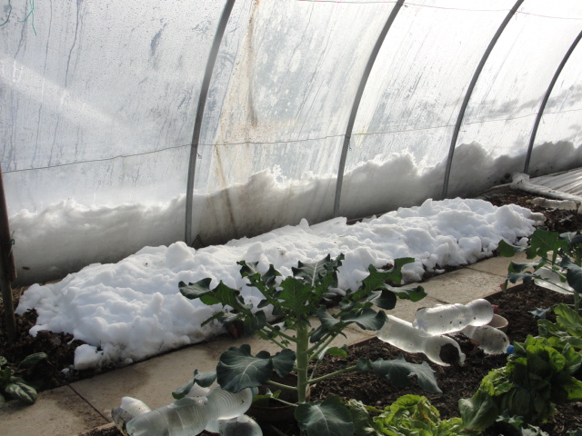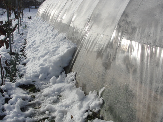 Chez moi, c'est donc 10 cm, une épaisseur insuffisante pour un bain de neige, mais bien suffisante pour un peu de marche à pieds nus en allant chercher une salade dans le tunnel.