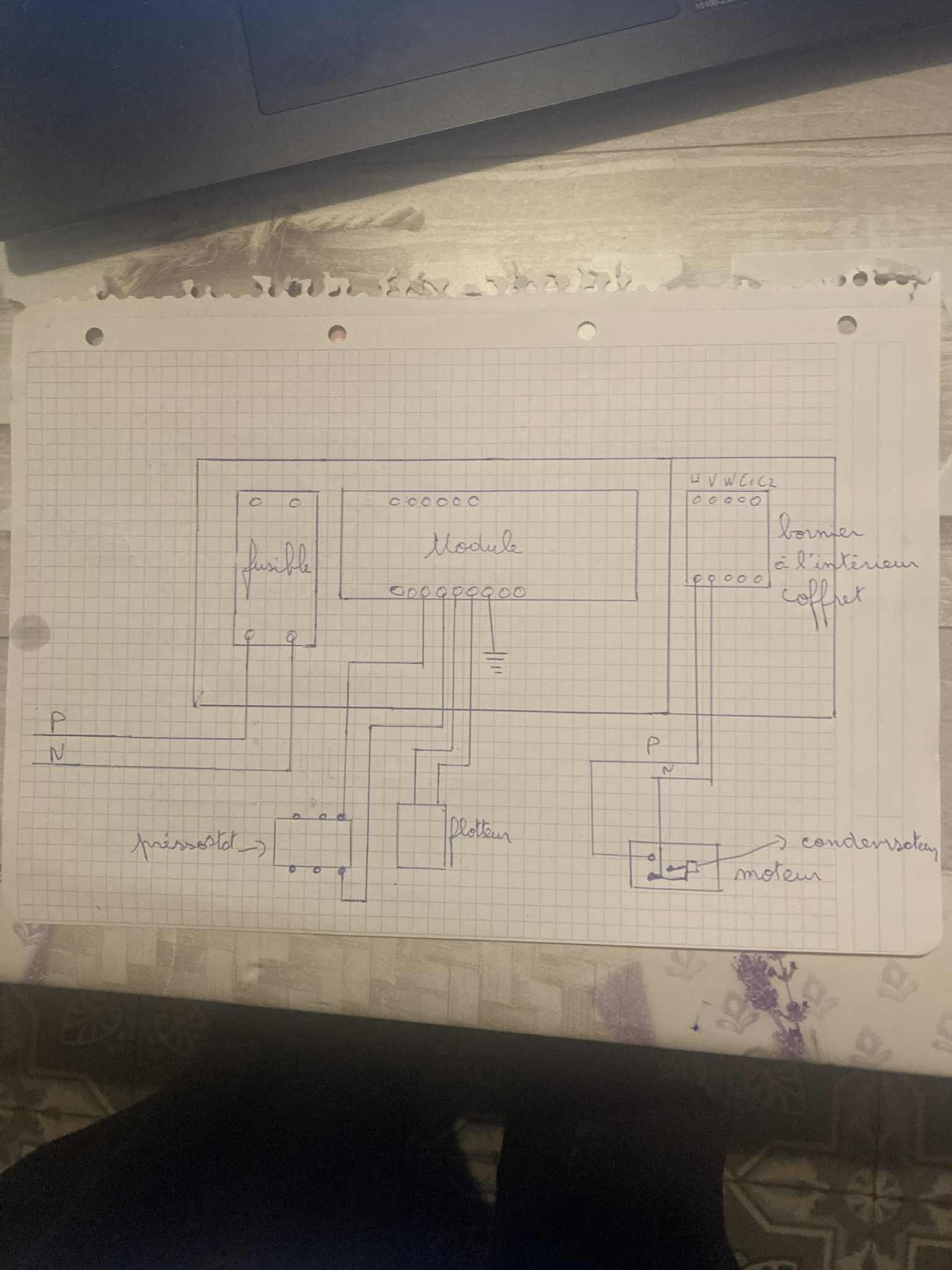 Voilà, j'ai recommencé le plan avec vos indications, pouvez vous me dire si c'est ok? le condensateur reste dans le boitier du moteur. Merci à vous.