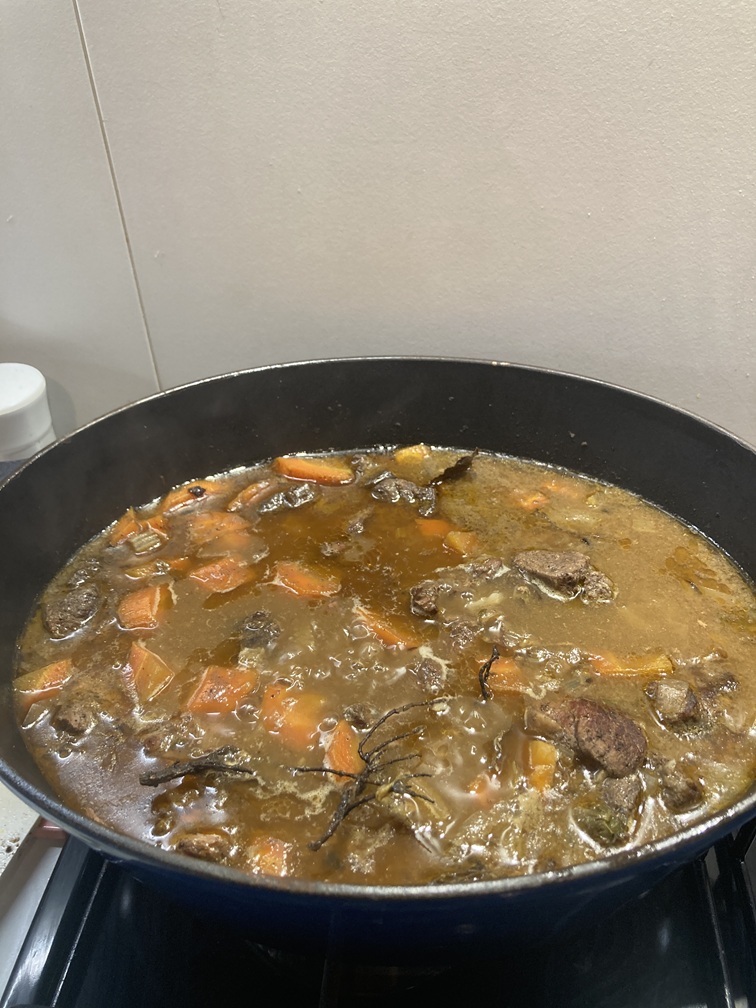 J'avais remis le sanglier à mijoter avec un verre de vin blanc.