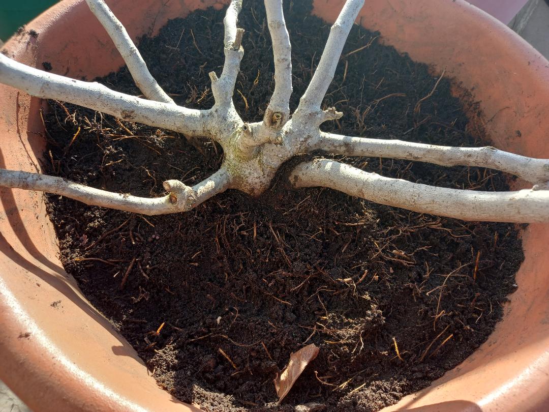 Le surfaçage a été très pénible. Je pensais n'avoir que de petites racines en surface. A la place j'ai trouvé des racines entremêlées et très peu de terreau à enlever. J'ai passé plus d'1h30 à enlever quelques centimètres en coupant les racines mais c'est très compliqué.