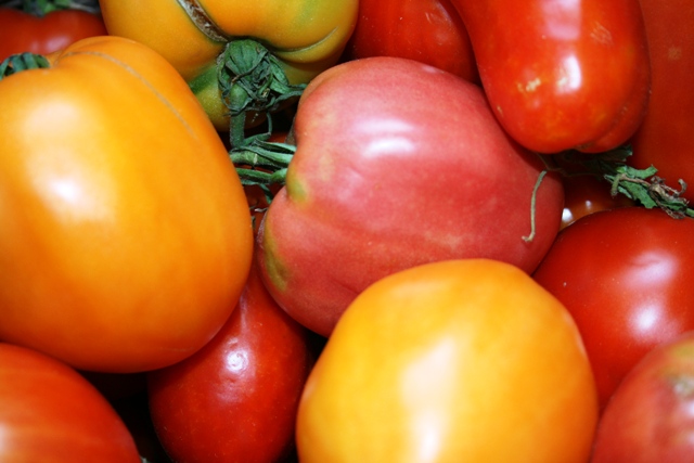 Il y a plusieurs variétés de tomates, j'adore la diversité des couleurs dans le panier !