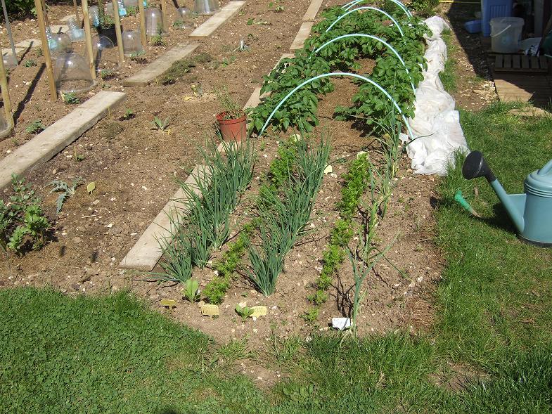 Encore une bonne journée. J'ai en fait très peu travaillé au potager. J'ai surtout désherbé tant dans les massifs que dans le potager. Ces sacrés mauvaises herbes poussent partout et pour le moment je n'ai pas encore de quoi pailler. Les premières tontes je les ai détruites car comme j'avais mis des engrais anti mousse, elles ne sont pas utilisables. (je voulais acheté des paillettes de lin mais 20 € le 7 Kg cela m'a fait reculer.