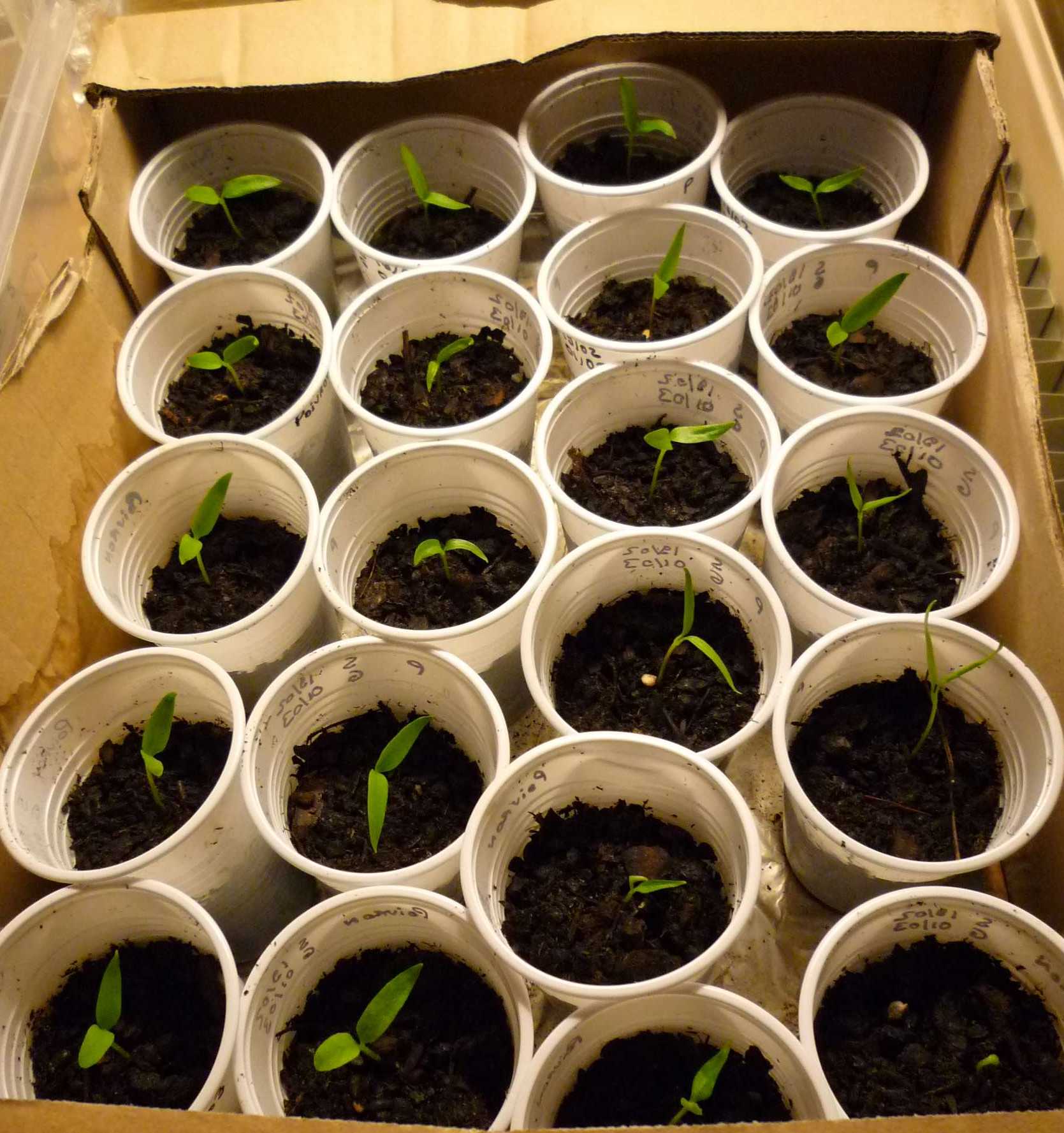 - semis de mes tomates ! 2 graines par gobelet dans un terreau humidifié. je suis bête, j'ai oublié ma liste chez moi
