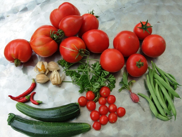 Princesse: le potager se porte plutôt bien mis à part les tomates qui sont presque toutes malades, les fleurs et les feuilles jaunissent puis tombent et les tiges ont de grosses tâches noires par contre les fruits déjà formés murissent normalement, c'est déjà ça