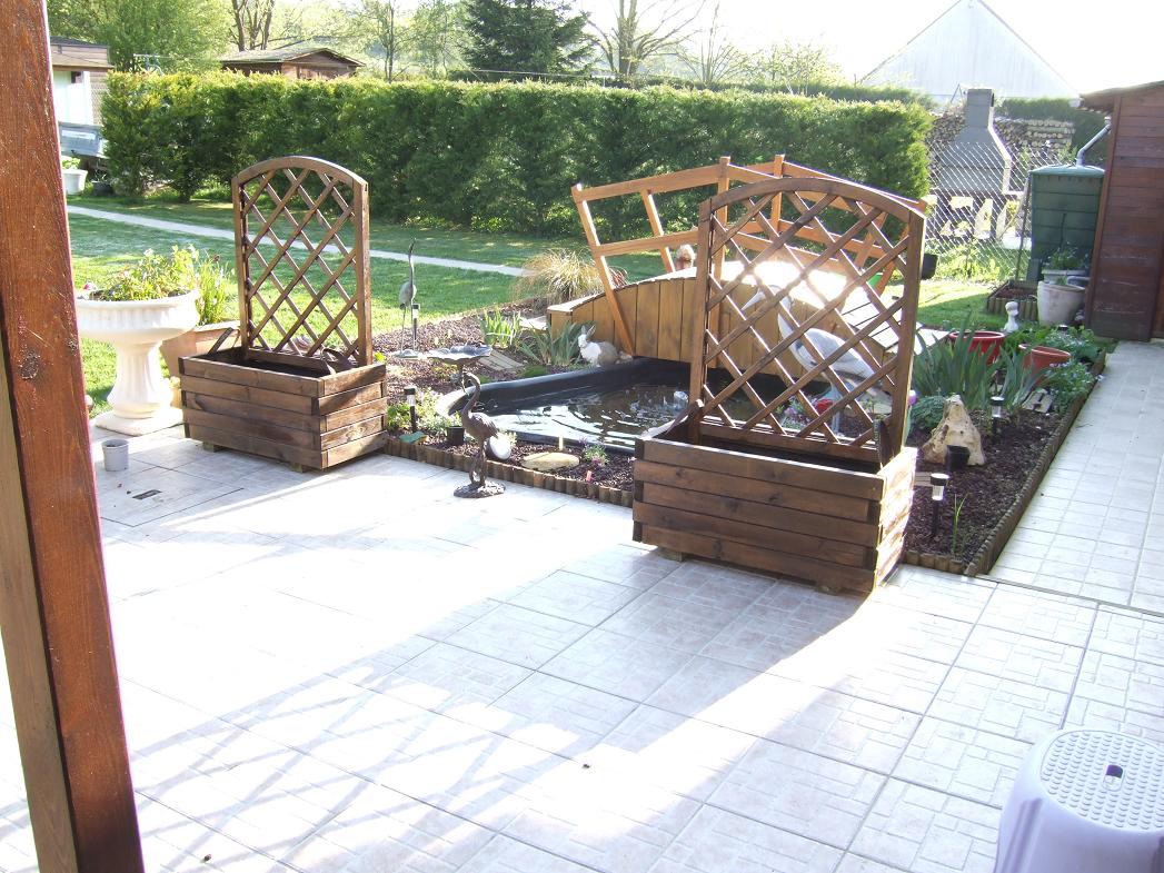 Pour mettre dans mes bacs que j'installe près du bassin j'ai acheté 2 clématites. Devant j'y mettrais des bégonias pendula et des lobélias cascades.