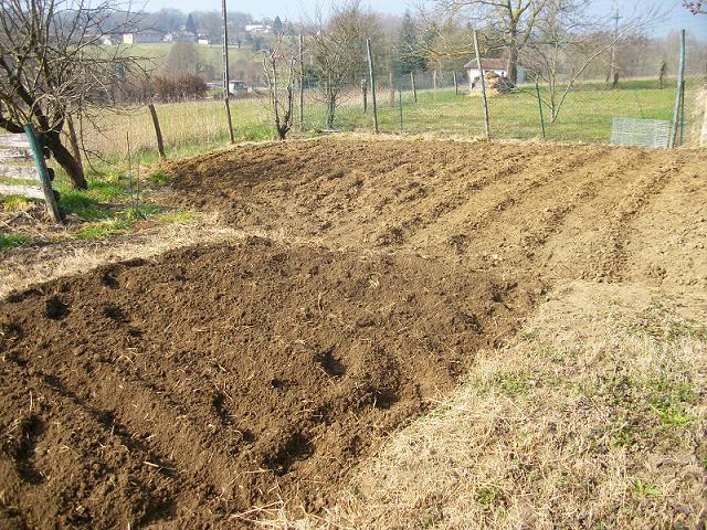 la surface je n'ai pas compté , à vue de nez +- 150 m2! :roll: puis Denis m'a dit qu'il en resterai encore si besoin etait! comme j'ai grand, je refais un peu plus de pdt. le seul hic, :? ce potager se trouve en bordure de route. Bien qu'une villa et le château dominent, la nuit ( tous les chats sont gris ) je crains les pillages. Denis ne s'est jamais rien fait prendre ,mais les temps sont durs! alors je vais simplement rajouter des tomates vertes, les "green giant" "emerald apple", puis les bleues, enfin les tomates blanches "yazon". et des plants de courgettes blanches de virginie,des melons tigres comme cela les couleurs rebuteront les maraudeurs! :P