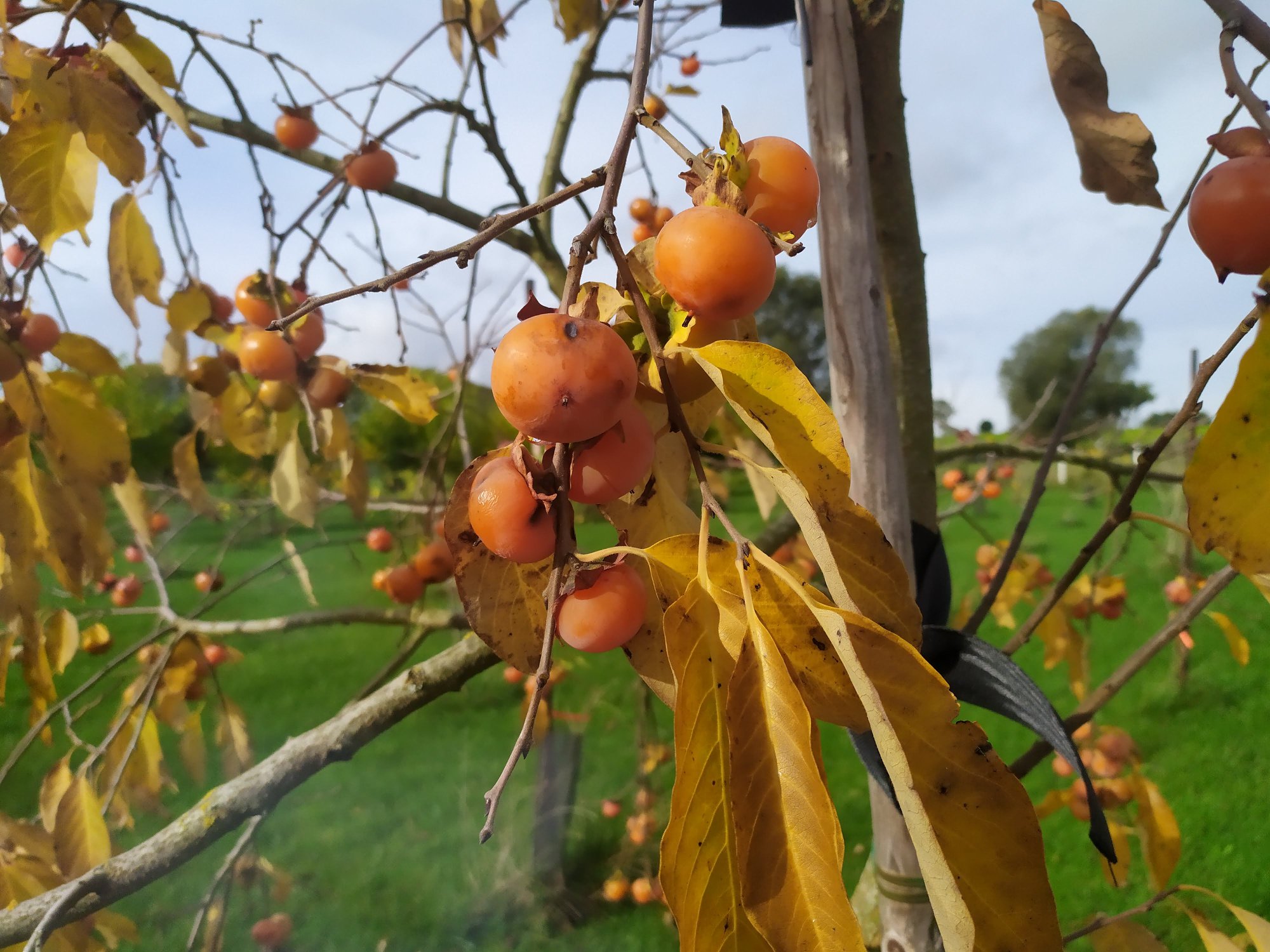 Je ne connaissais pas du tout le plaqueminier et son fruit. Mais en cherchant des asiminiers, je suis tombée un peu par hasard dans une petite pépinière spécialisée dans le kaki à Geraardsbergen en Belgique. En entrant dans leur verger de collection, je dois dire que les arbres m'en ont mis plein les yeux.