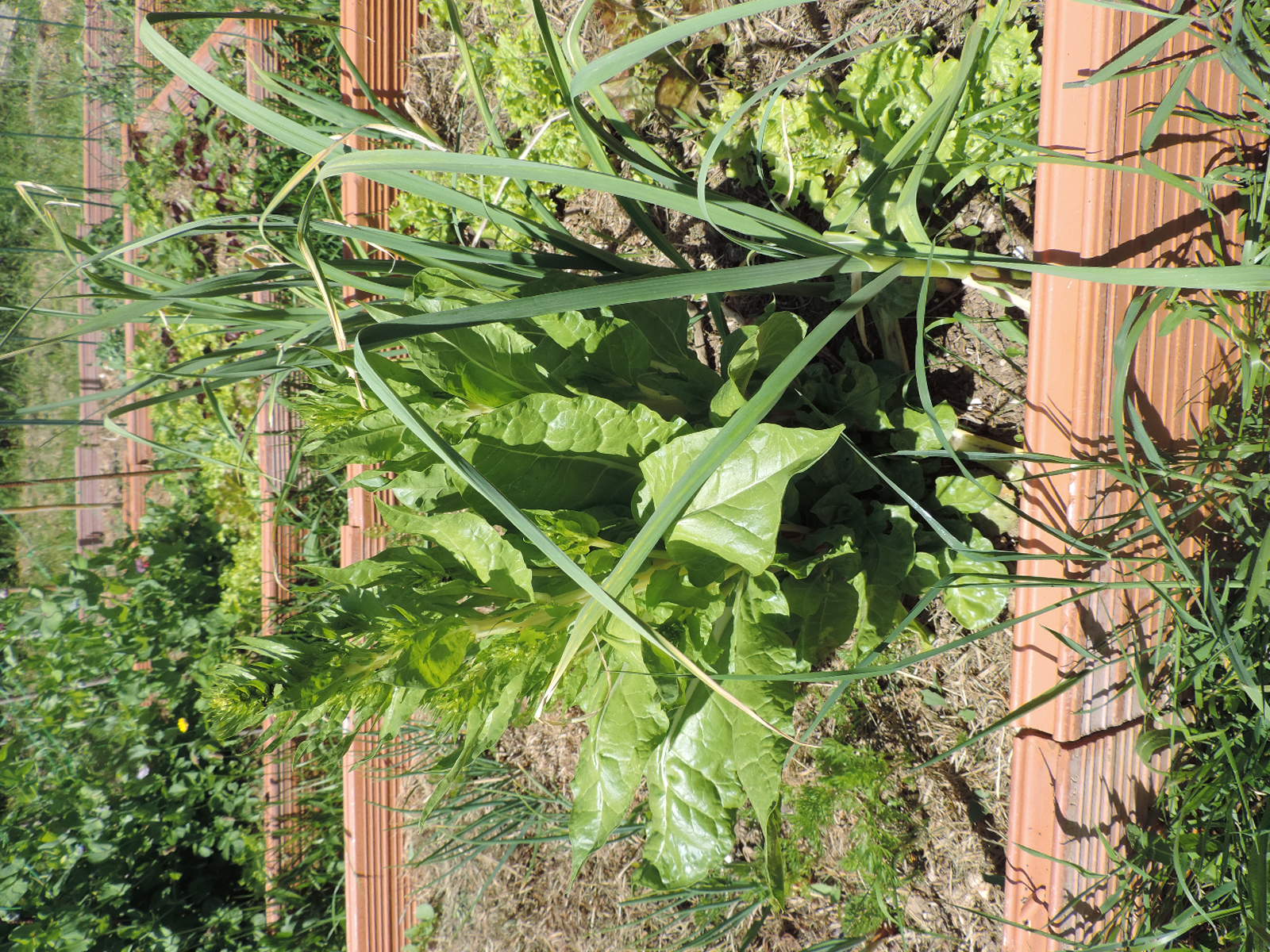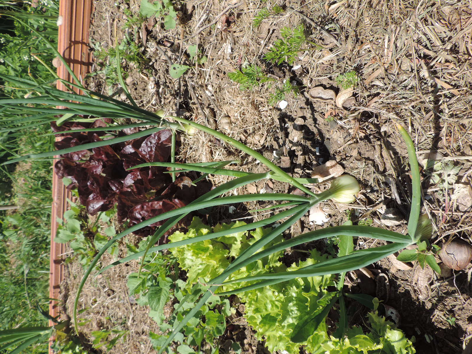 Pour les oignons, j'en avais acheté des plans, des tiges, je ne sais pas comment on dit, et ils sont bien plus jolis que les bulbes que mon frère m'avaient donnés. Je vais laisser monter à graine, mais je ne sais pas quand semer du coup