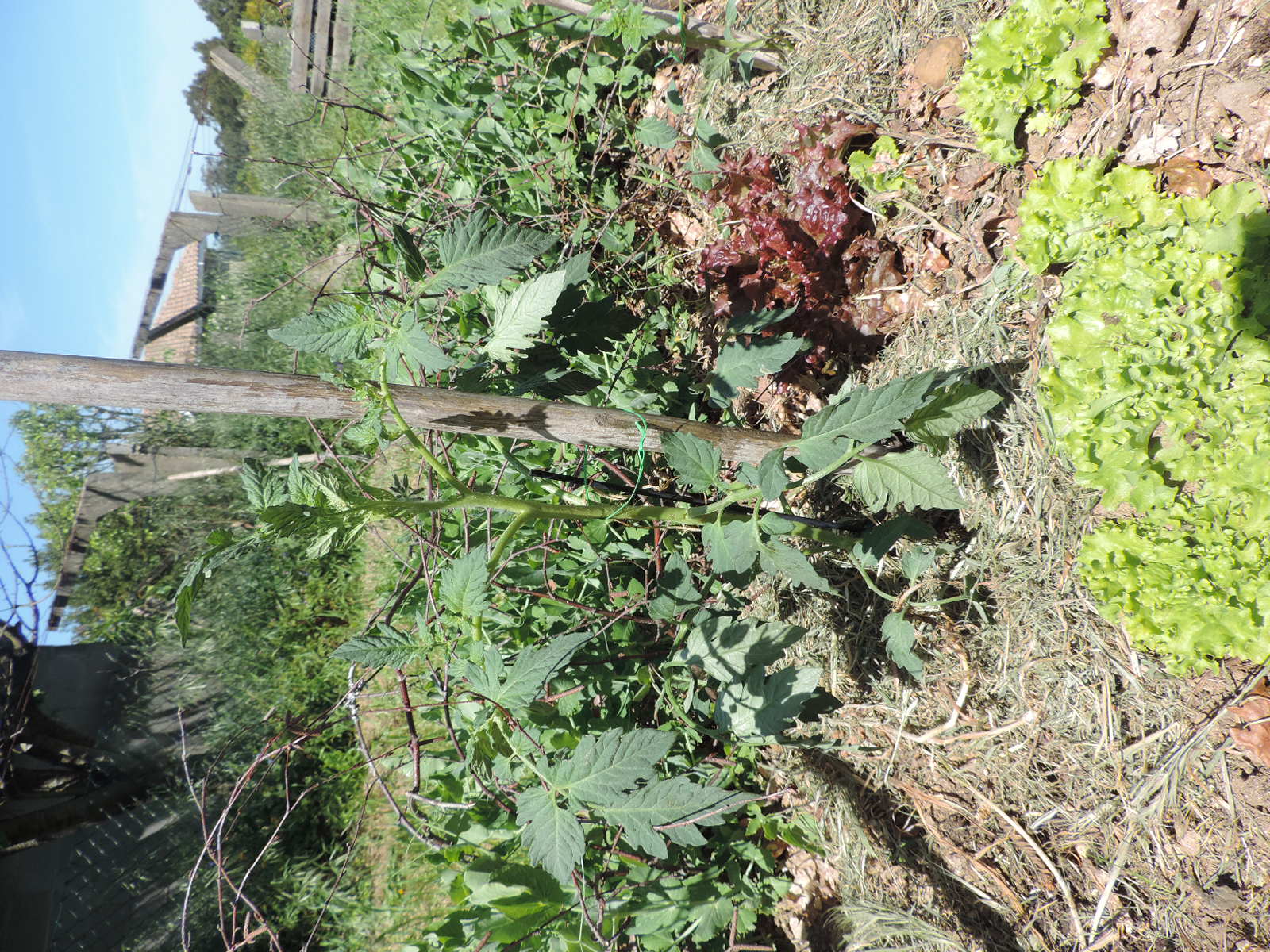 la blette aussi va bientôt fleurir et pareil, je vais laisser faire la nature... ja'i de la mizuna qui sort, c'est la 1º année que j'en fais, je ne sais pas trop quand je vais pouvoir manger... la grosse tomate greffée, 1º essai aussi et quelques fleurs voilà pour aujourd'hui! bonne après-midi!