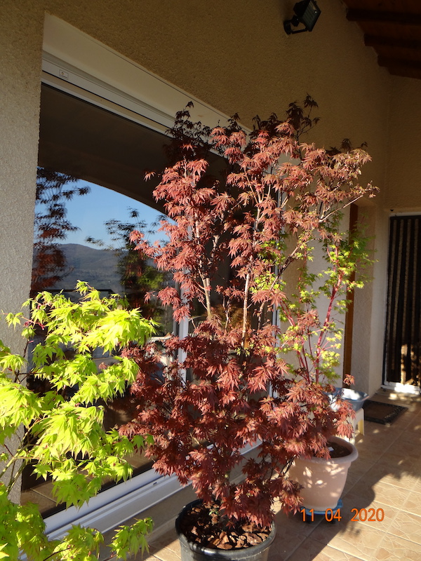 j'ai également fait l'acquisition d'un érable du japon Skeeter Bloom il y a 6 mois. J'ai été surprise de sa pouce durant l'été (obligé de mettre un tuteur pour protéger la tige...).