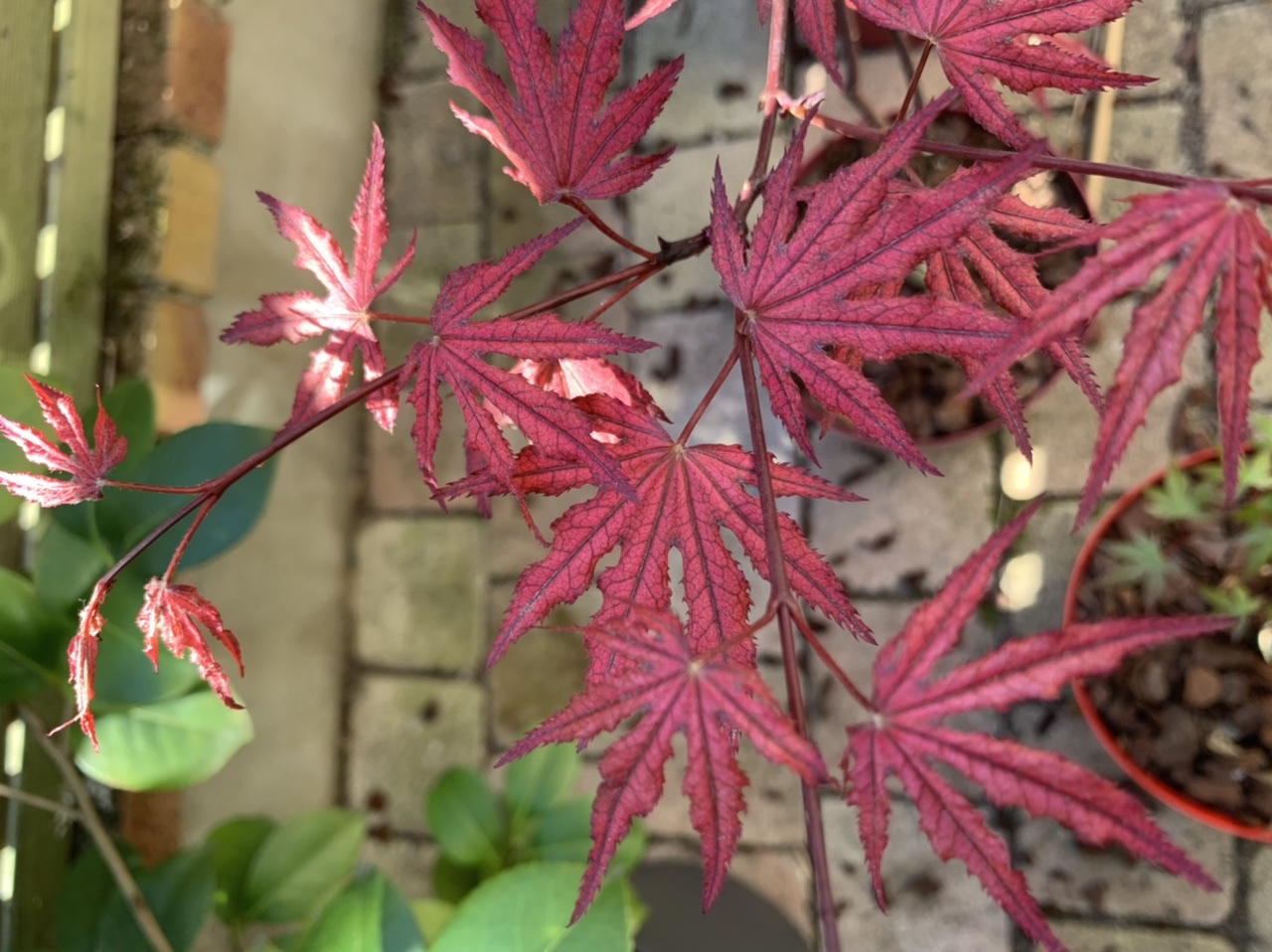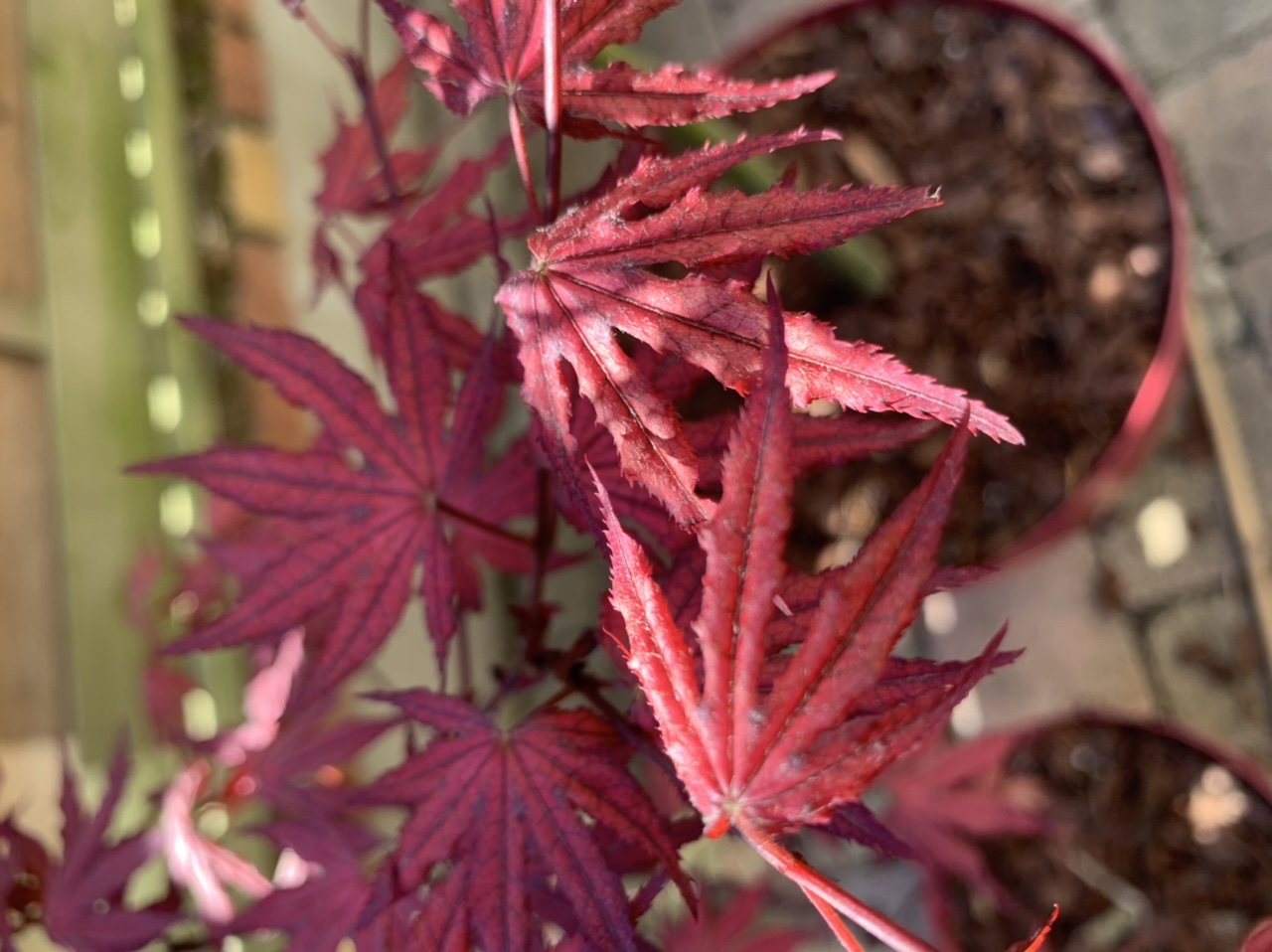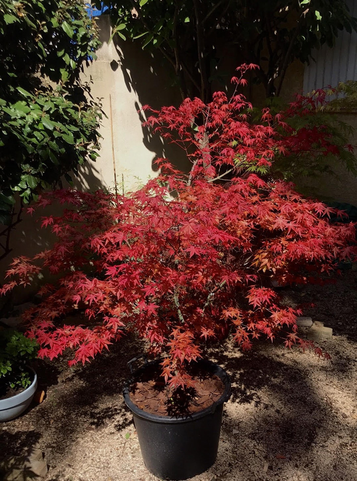 Skeeter et Sando sont les seuls à avoir leur feuilles complètement déployées mais ils sont sur la terrasse sous l'auvent de l'avancée de toit plein sud et à l'abri du Mistral. Ils sont avec les "bébés" érables
