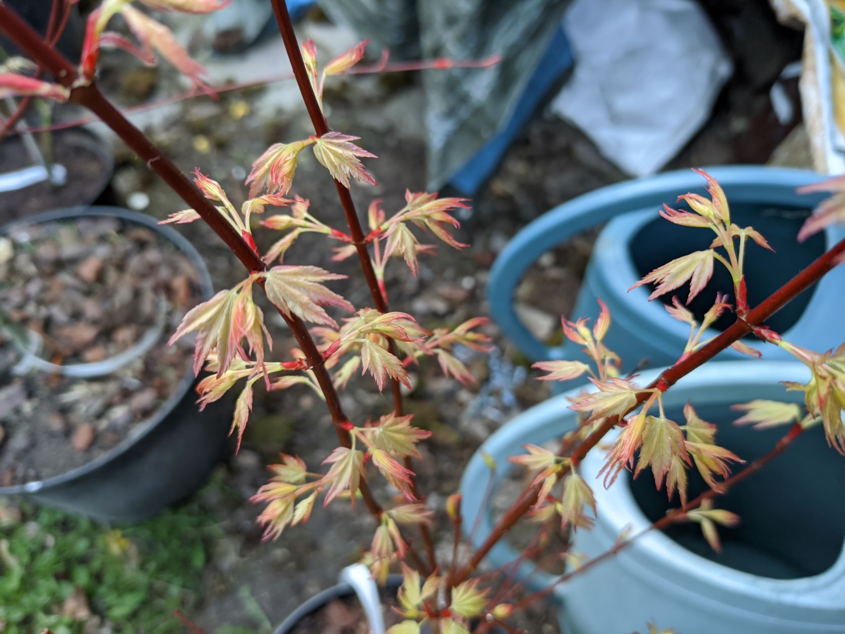 Pour l'instant ici plus de dégâts sur d'autres variété d'arbustes que sur les érables mais je crains le pire pour cette semaine, surtout pour ceux en pleine terre même si ici ils sont pas très avancés.