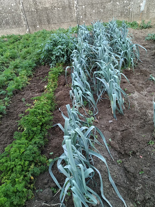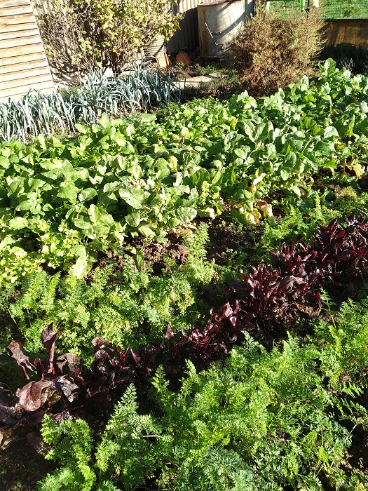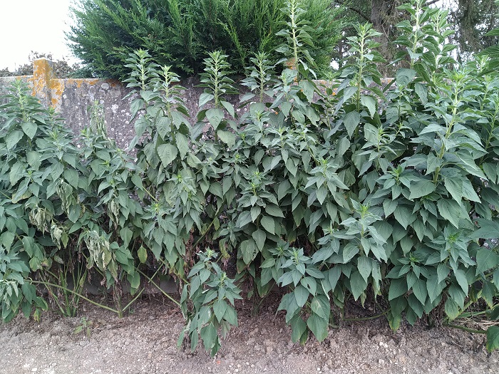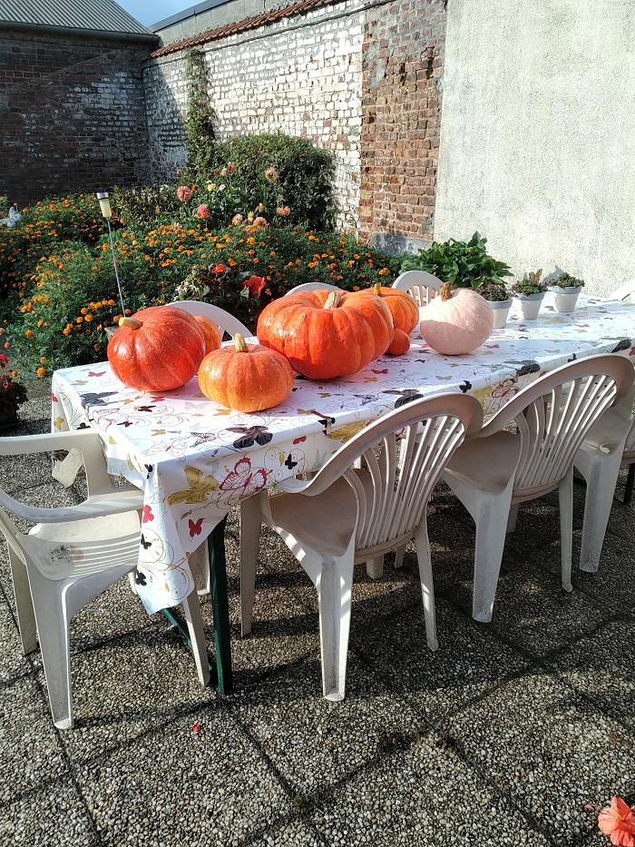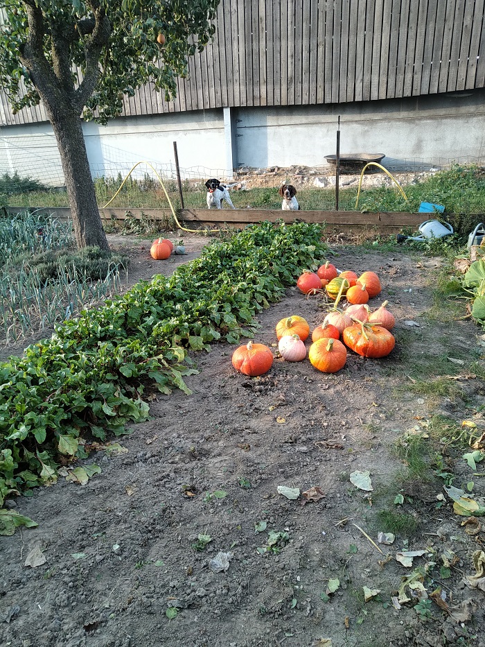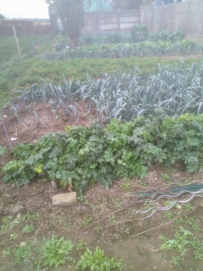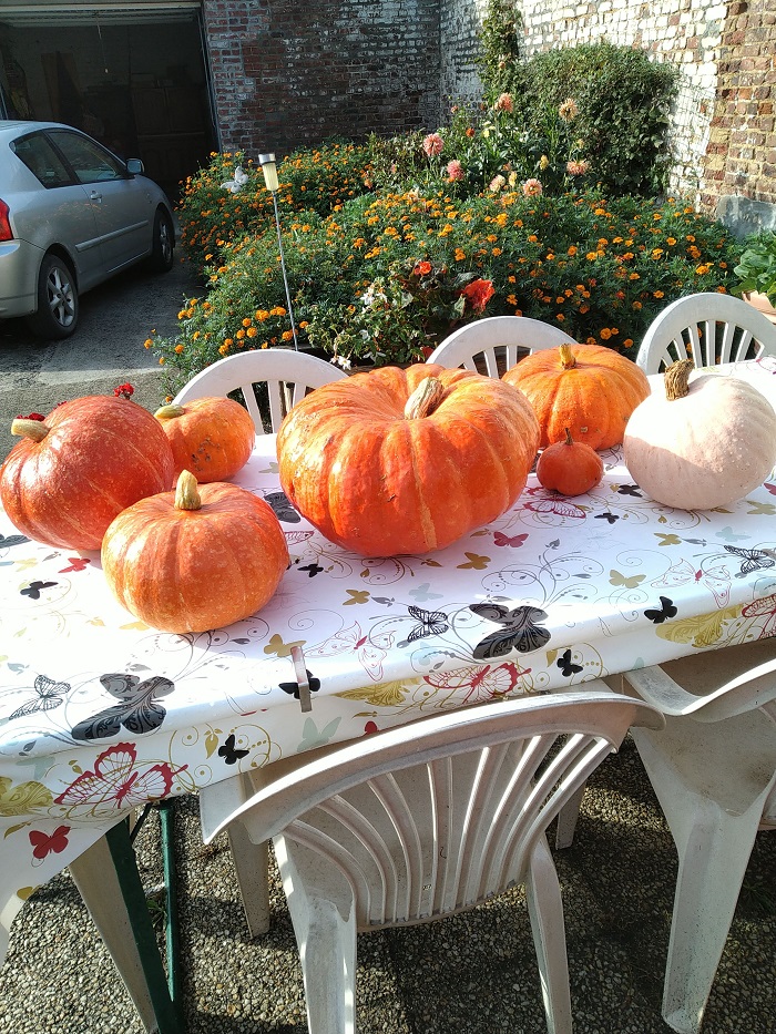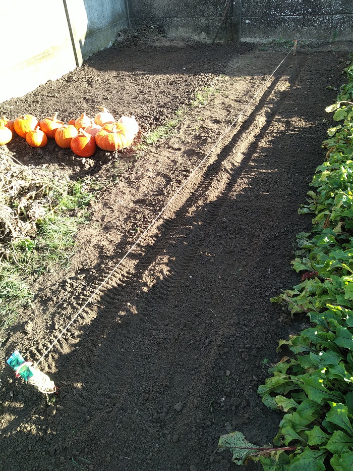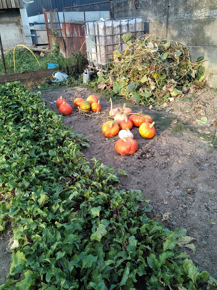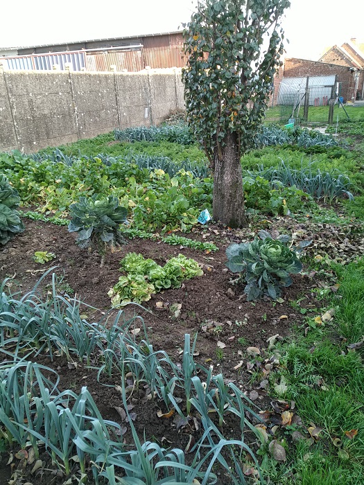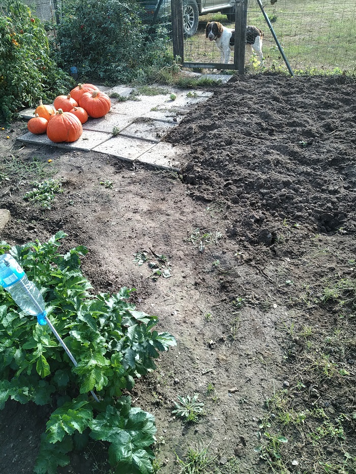 Petit potager avec ses topinambours potimarrons sans les tomates arrachées aujourd'hui et place prévu pour les maches