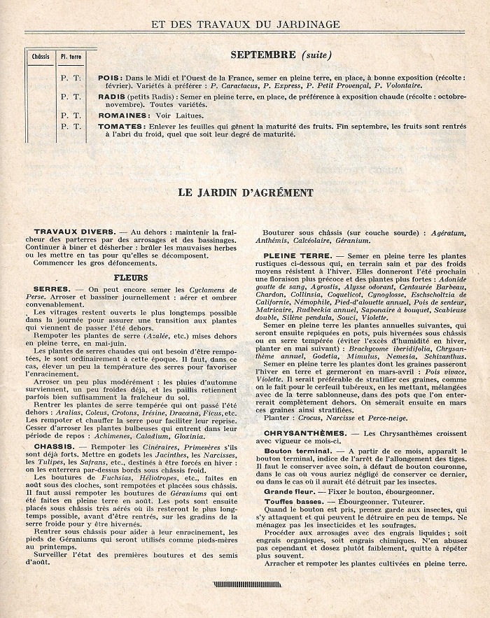 Paisibles symphonies de couleurs, de senteurs et de tons dans les plates-bandes carrées ou bien rectangulaires tous les verts foncés ainsi que le vert clair, le tout patiemment composé.