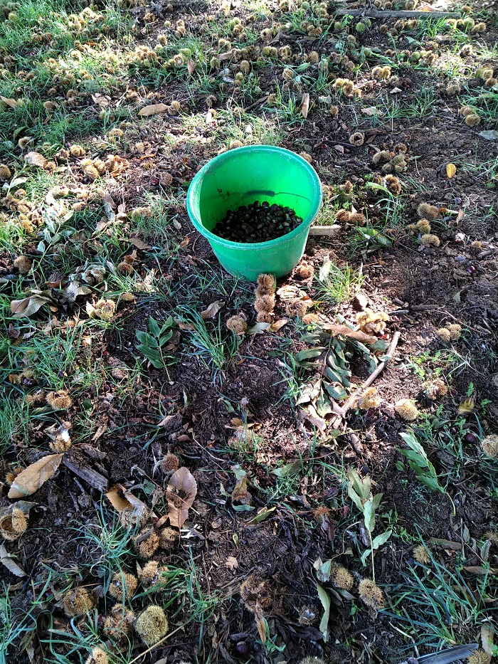 Un passage au potager pour la soupe du soir et un ramassage de châtaigne dans un petit sous bois
