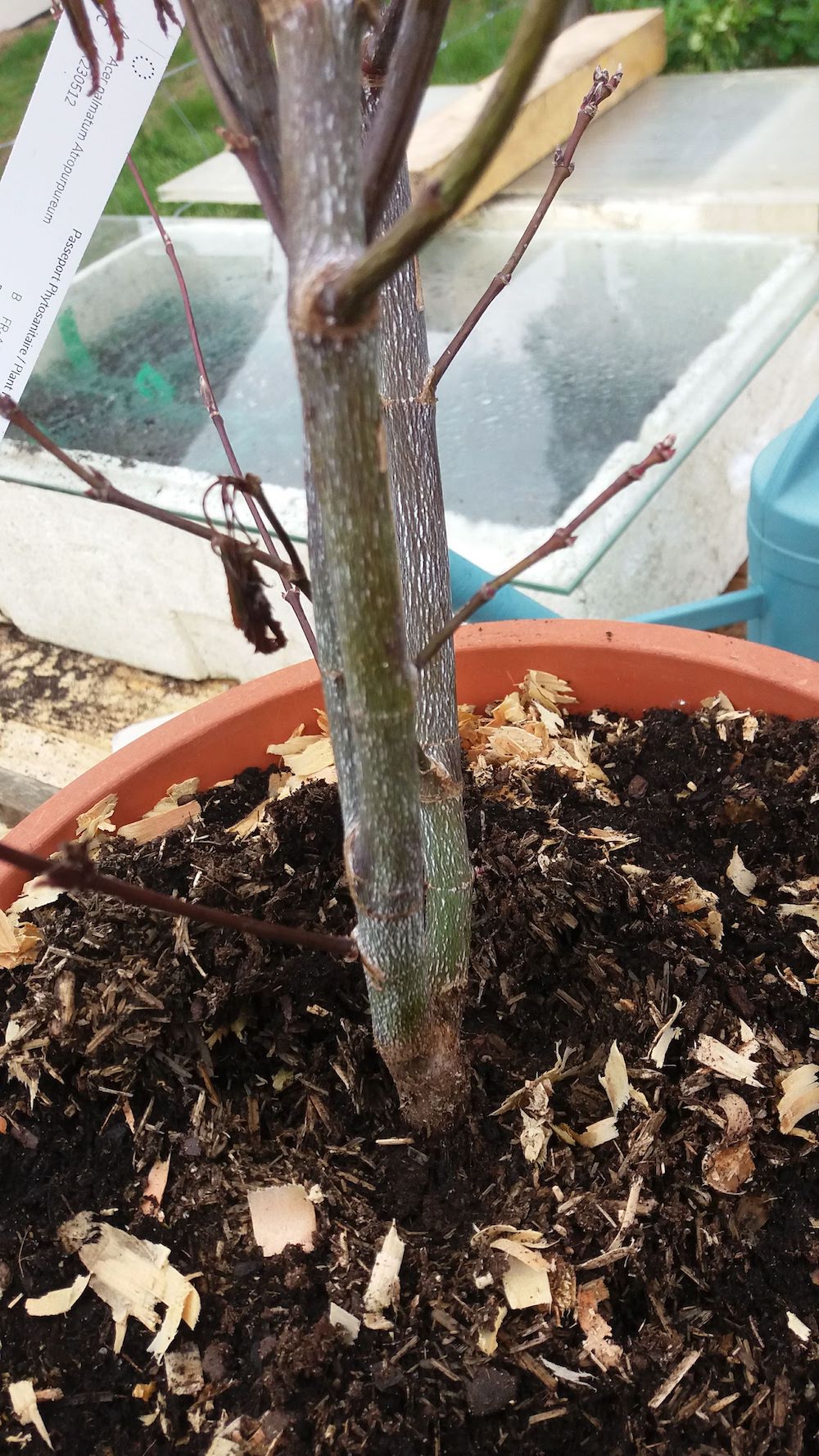 La taille vient d'être faite, il est à l'abris de la pluie sous ma terrasse, tous les autres ont bien débourré, j'ai même pu observer des petites grappes de fleurs (?) sur un ozakazuki.