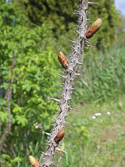 Mon voisin m'a dit que c'étais' un rosier épineux' ou 'rosier du japon' .ça fleurit abondamment et en fin de floraison ça fait des fruits rouges non-comestibles pour nous !Mais je pense notamment aux zoziox qui eux doivent se régaler !Voilà pour ta question Lulu .
