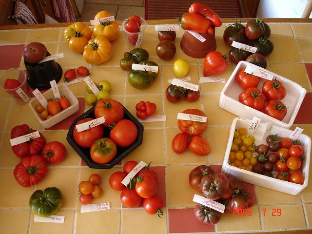 Chez moi ça commence bien aussi maintenant, j'ai ceuilli beaucoup de tomates noires des Roses de Berne, des Coeur de Boeufs rouge, une Green Zebra, Il y a une magnifique tomate Ananas (feuilles de pdt) mûre que je cueillerai peut-être demain.