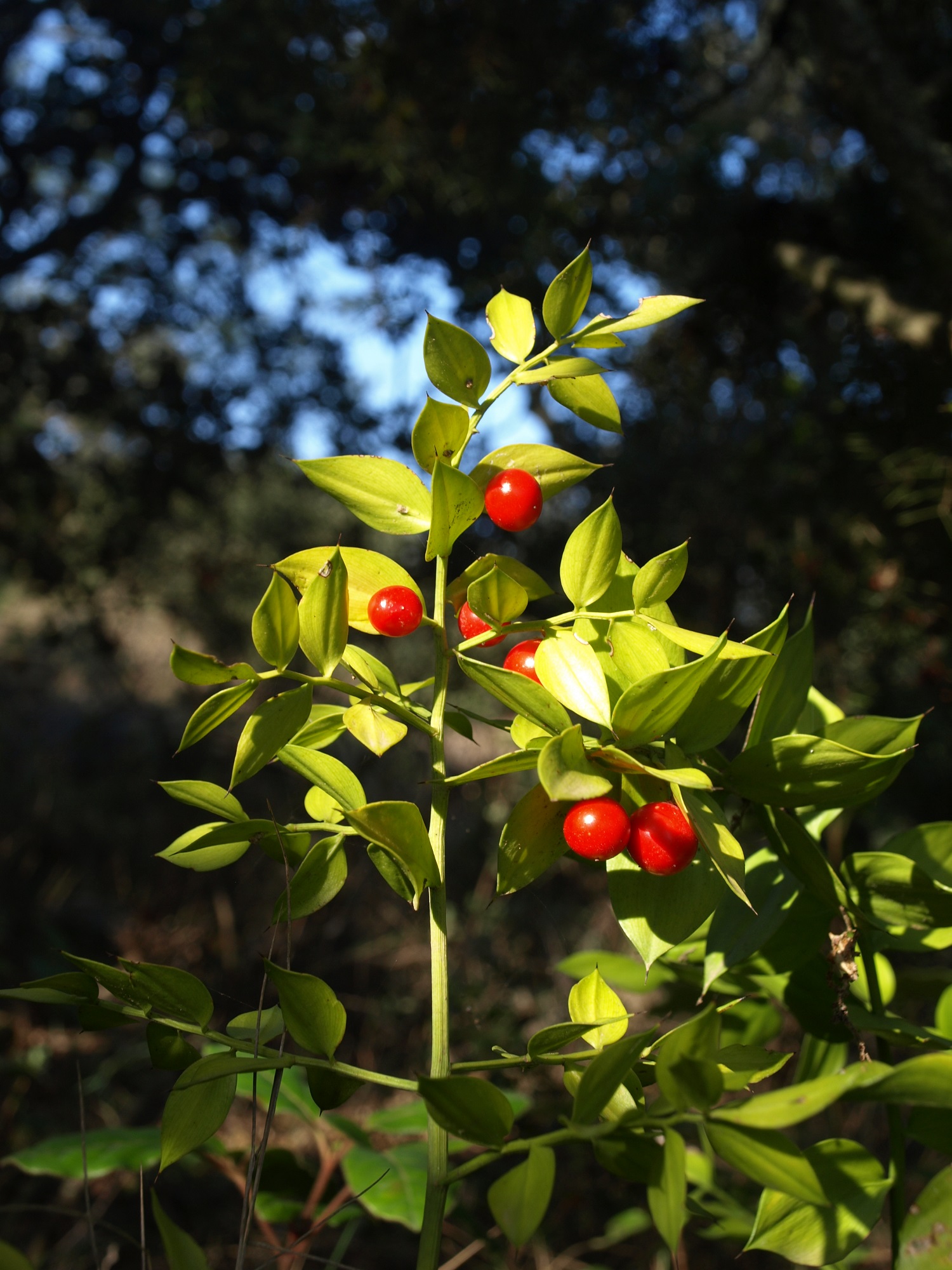 un bel Ophrys et au - dessus un fragon qui étincelle