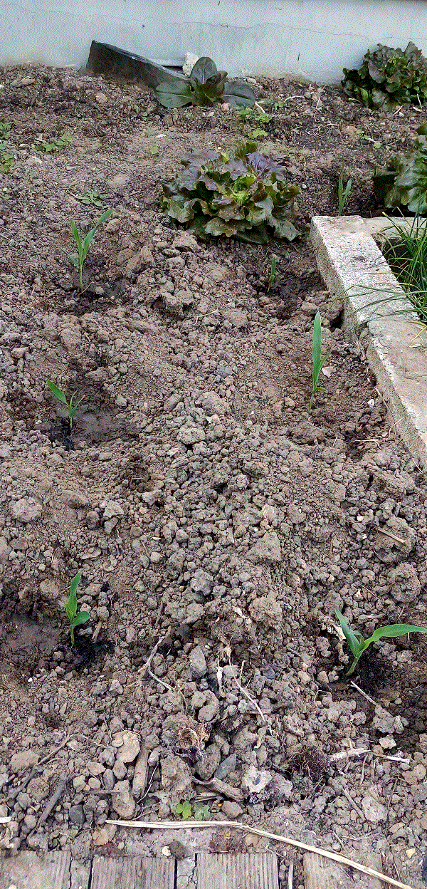 Hier en rentrant, plantation de 8 pieds de maïs doux.