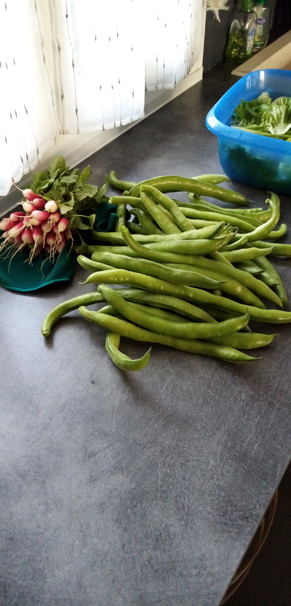 Arrêt des fèves et arrachage Samedi Préparation pour la plantation des tomates Et dimanche, j'ai craqué... Les plants de cucurbitacées et betteraves Les poivrons et aubergines qui s'impatientent... Les salades Et pour terminer, la récompense, premier bol de la troisième et dernière planche de radis. Bonne journée aux passants.