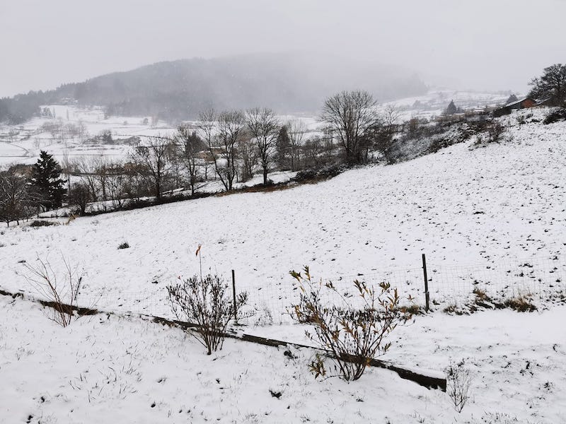 Ce matin, fifille travaillait et il neigeait à Ambazac (20 km au nord est), les monts étaient saupoudrés de blanc . J'ai vu qu'il avait aussi bien neigé à ma montagne, nous irons dans quelques jours si nous ne sommes pas reconfinés.