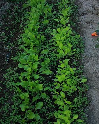 Dessous la petite serre j'ai repiqué des rougettes de Montpellier :une a déjà été croquée par les limaces mais les autres sont déjà bien développées...il m'en reste encore une petite dizaine je crois.Et je vais en remettre encore une demie-douzaine ensuite je complèterai avec des grenobloises ou reine de mai ou les deux.