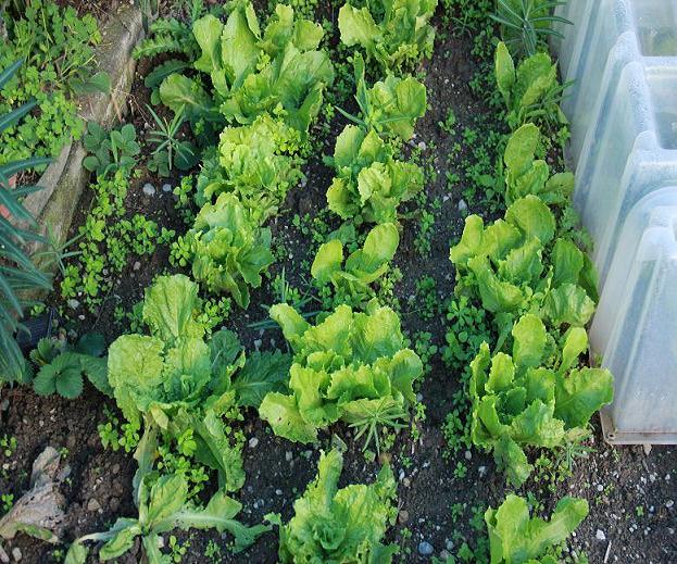 Sous la serre ,les grenobloises ,reines de mai et mesclun continuent de grandir .Il me reste qq tomates que j'hésite à supprimer car ce sont les dernières de la saison et c'est toujours agréable de pouvoir associer salades /betteraves rouges/concombres avec des tomates.